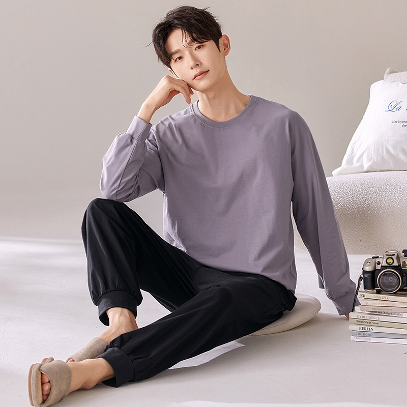 남성용 잠옷 가을 겨울용 면 긴팔 학생 청소년 2025년 신상 루즈핏 대형 홈웨어 세트스토어 가기