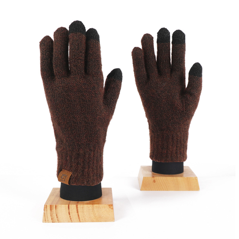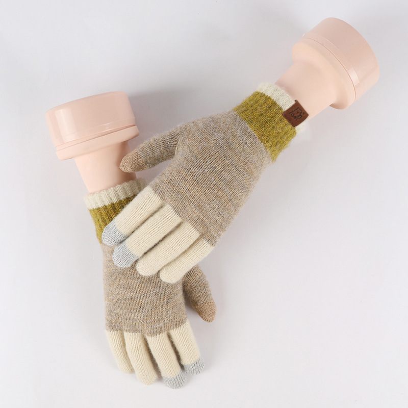 여성용 일본 니트 장갑, 겨울용 벨벳 두꺼운 따뜻한 장갑, 남성용 야외 사이클링 및 스키용 5손가락 터치스크린 장갑