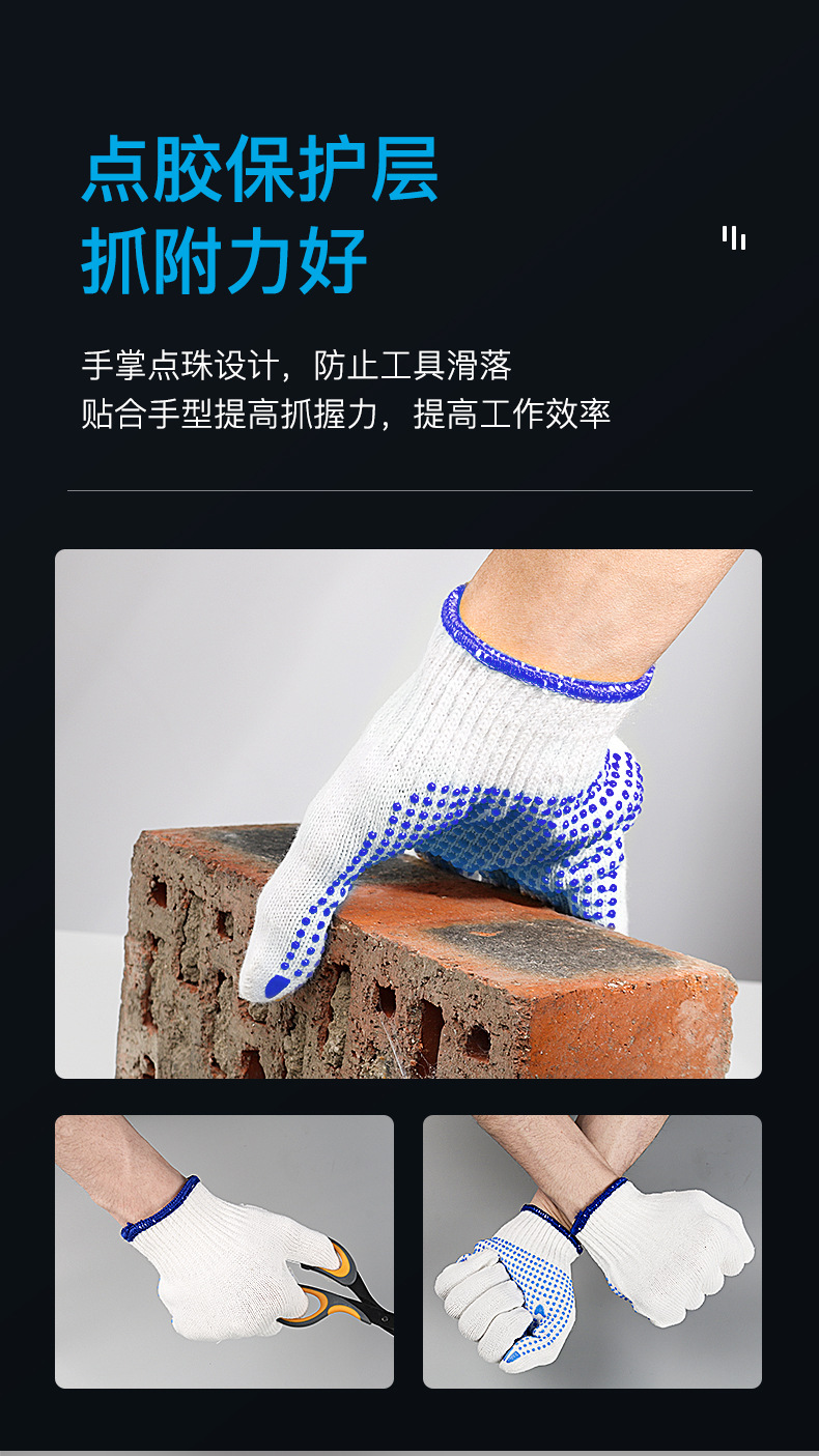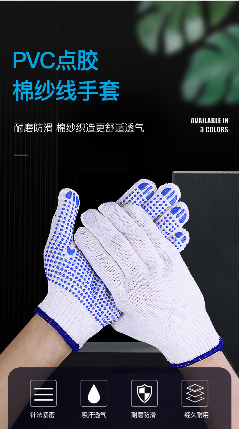 와우 맞춤형 노동 보호 장갑, 표백 면사 600720 도트, 플라스틱 도트, 미끄럼 방지, 보호 및 내구성