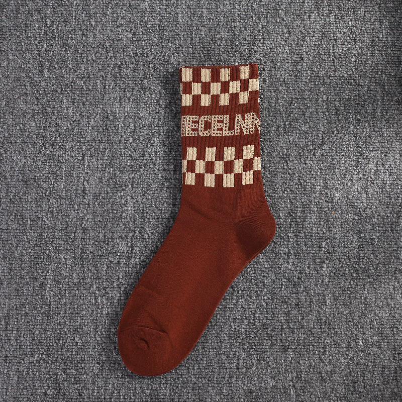 복고풍 2021 의 체스 판 흑백 격자 무늬 양말 New Square 양말 남성 얼짱 가을과 겨울 간단한 하이 양말
