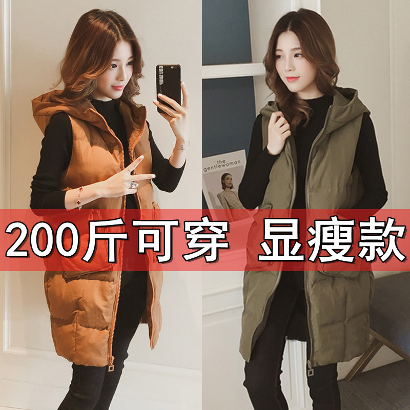 2022 새로운 플러스 사이즈 여성 가을과 겨울 면 조끼 긴 지방 m 자매 면 옷 슬림 조커 200kg 코트스토어 가기