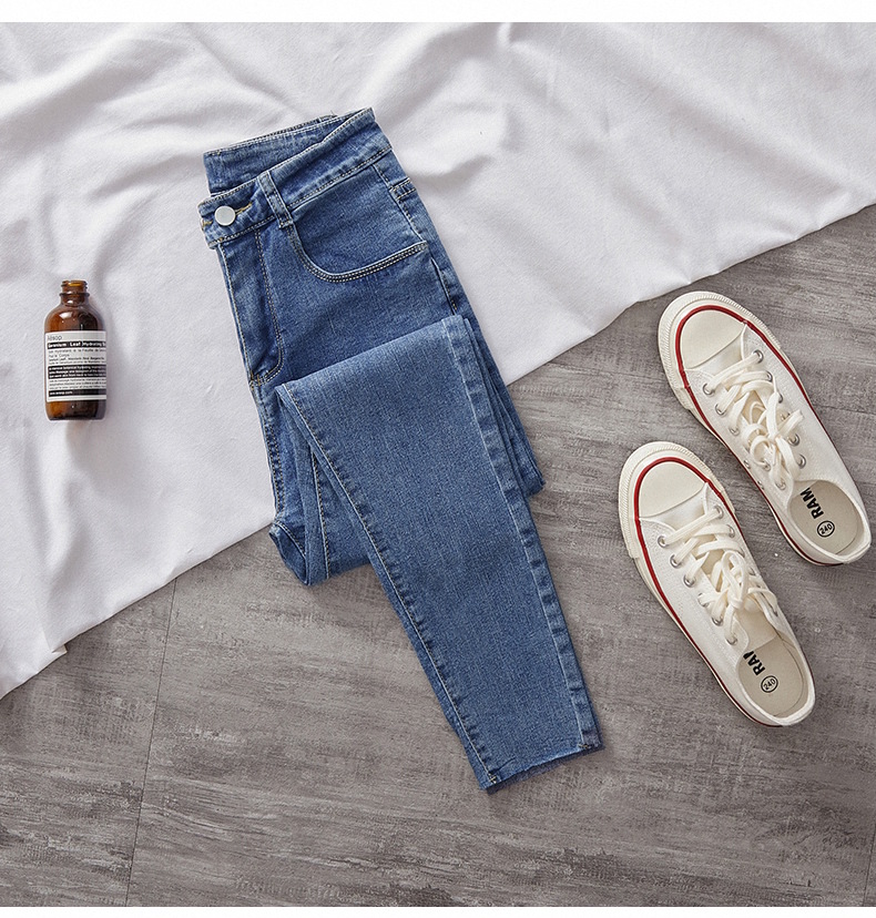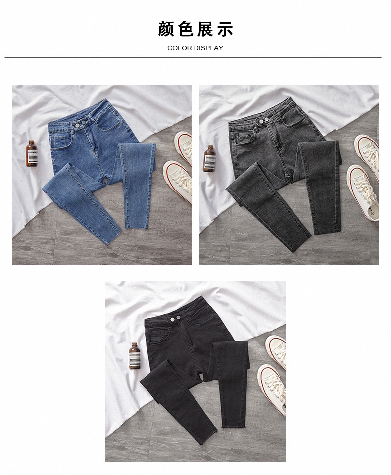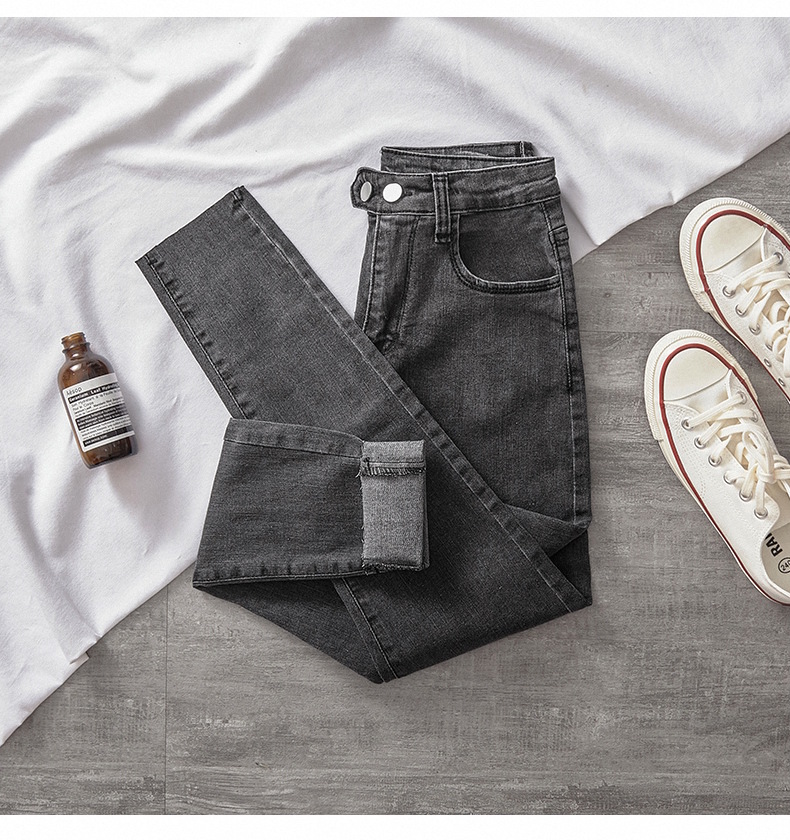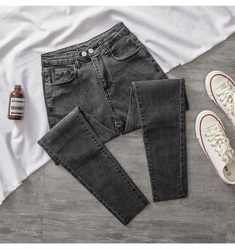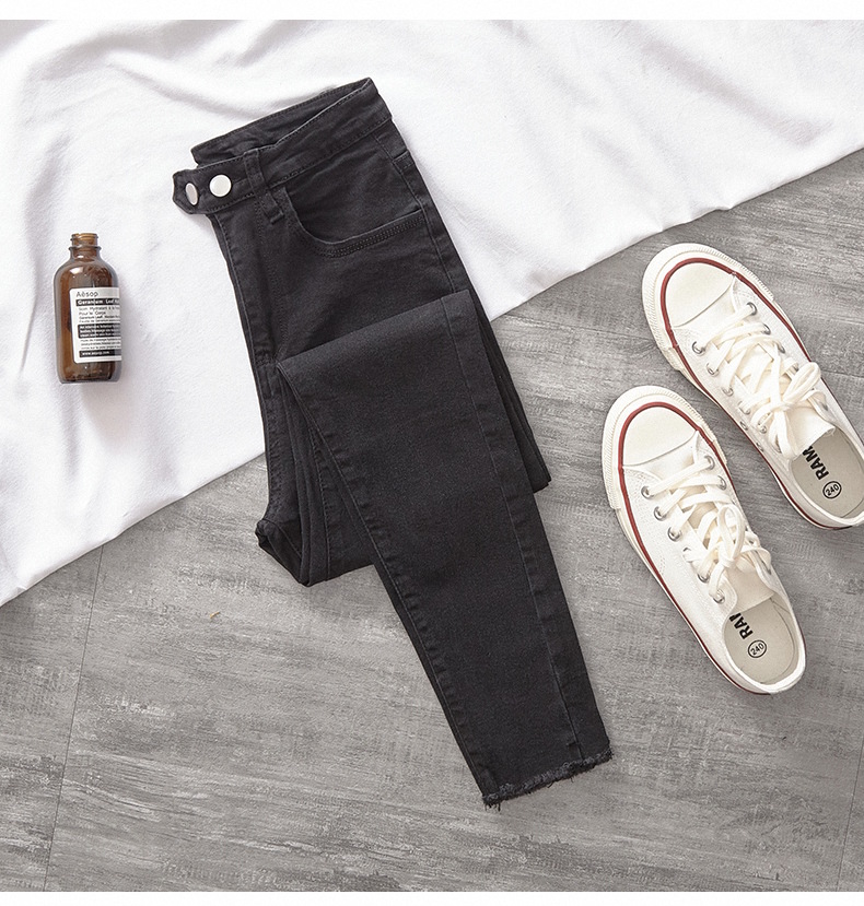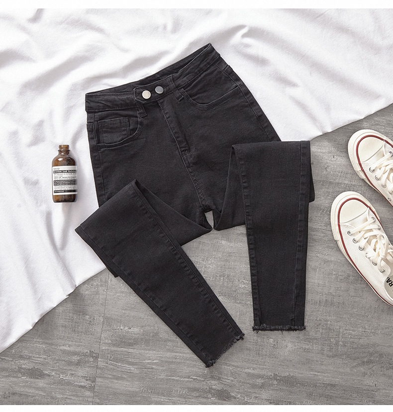 하이 웨이스트 블랙 슬림 룩 청바지 여성 바지 봄과 가을 새로운 겉옷 슬림 핏 겉옷 크롭 스트레치 펜슬 펜슬 팬츠스토어 가기