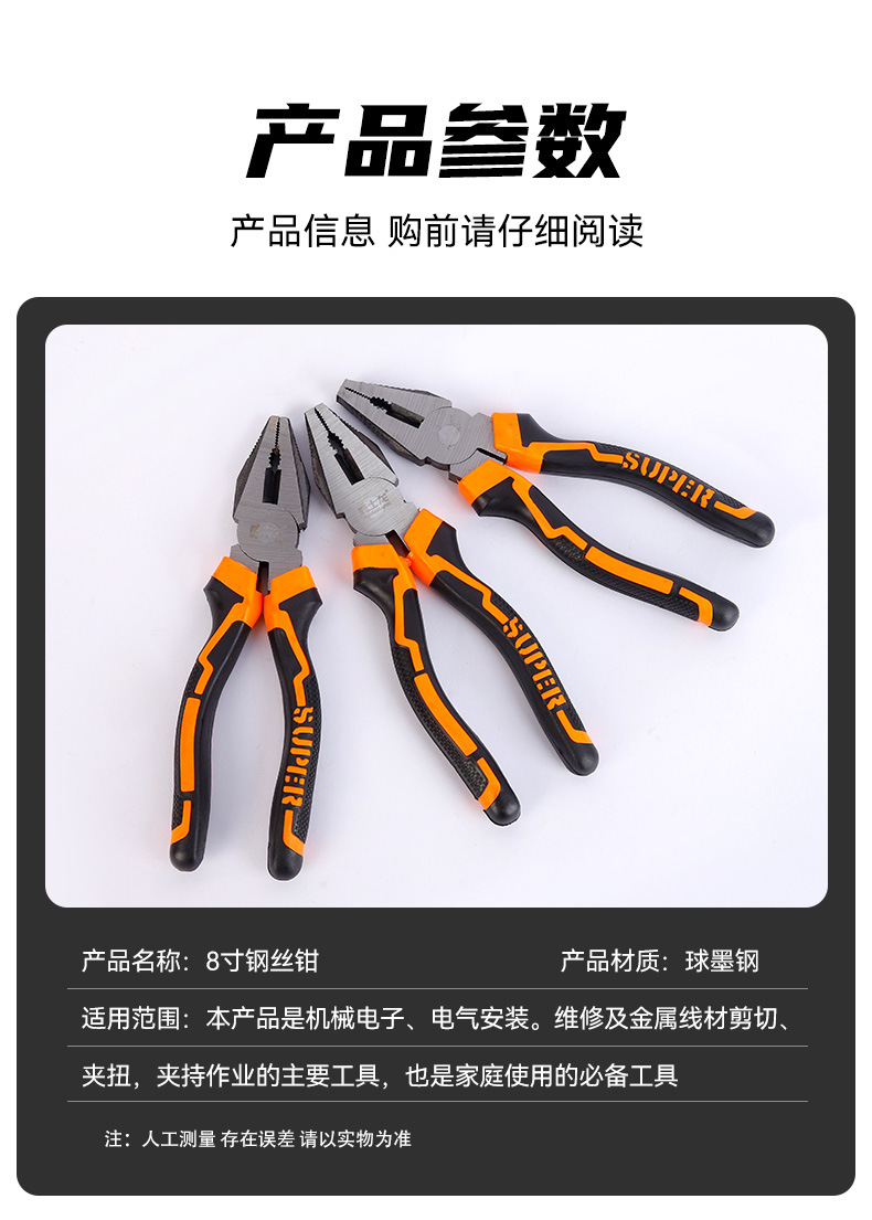 하드웨어 도구 8inch 와이어 펜치 수제 펜치 플랫 펜치 전기 기사 와이어 커터 도매 다기능 바이스스토어 가기