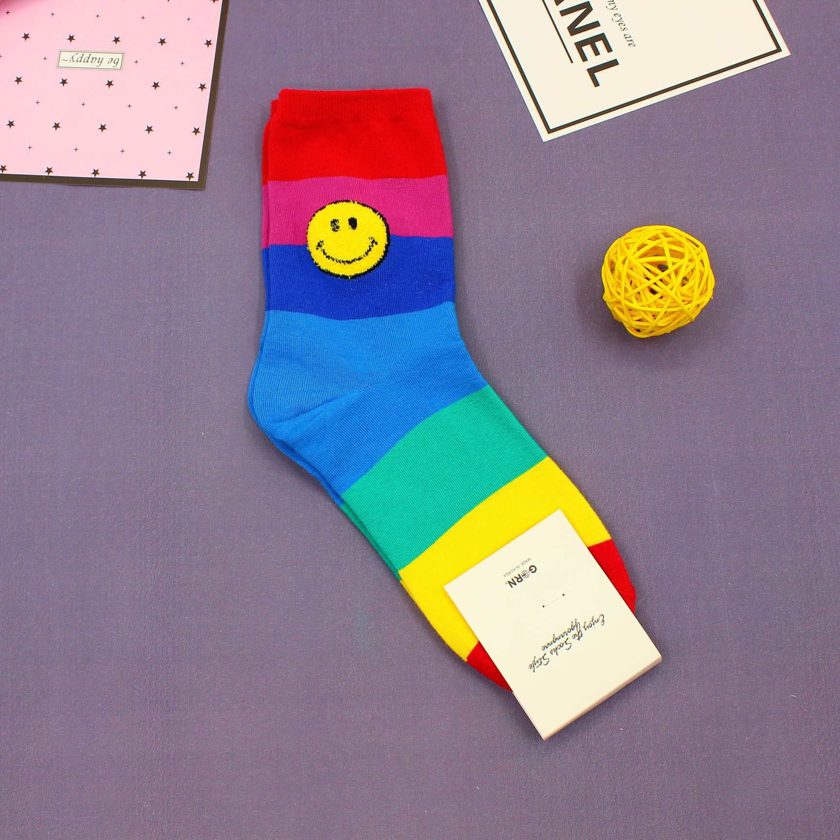 WL291 한국 동대문 가을과 겨울 새 무지개 줄무늬 스마일리 한국 여성 양말 도매