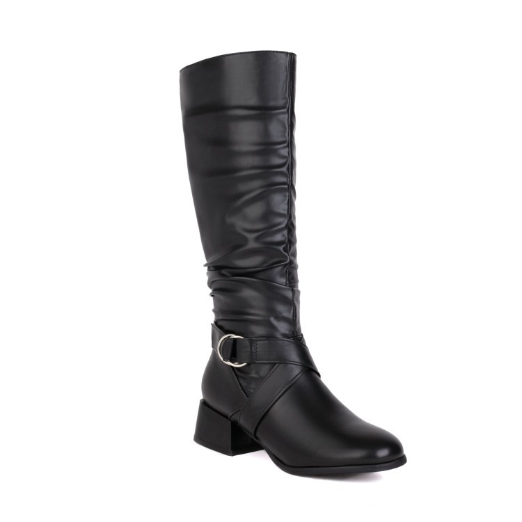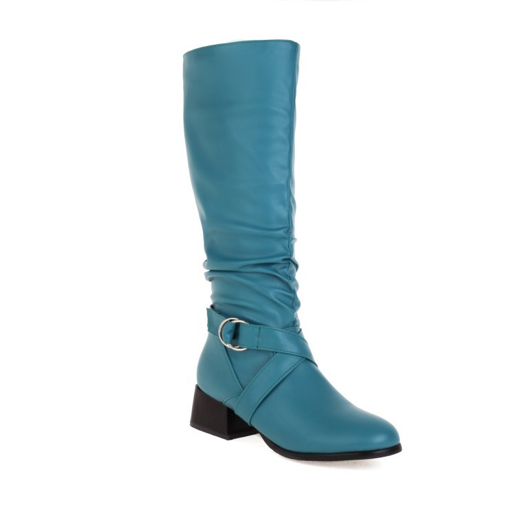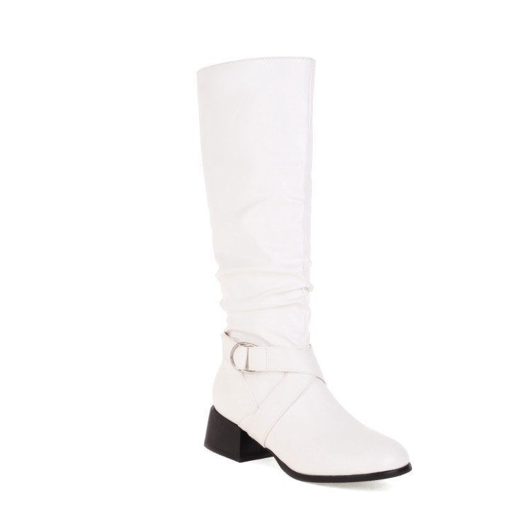 2021 가을 겨울 신무역 여성 부츠 벨트 버클 사이드 지퍼 하이 부츠 로우 힐 34-43 대형 신발 도매