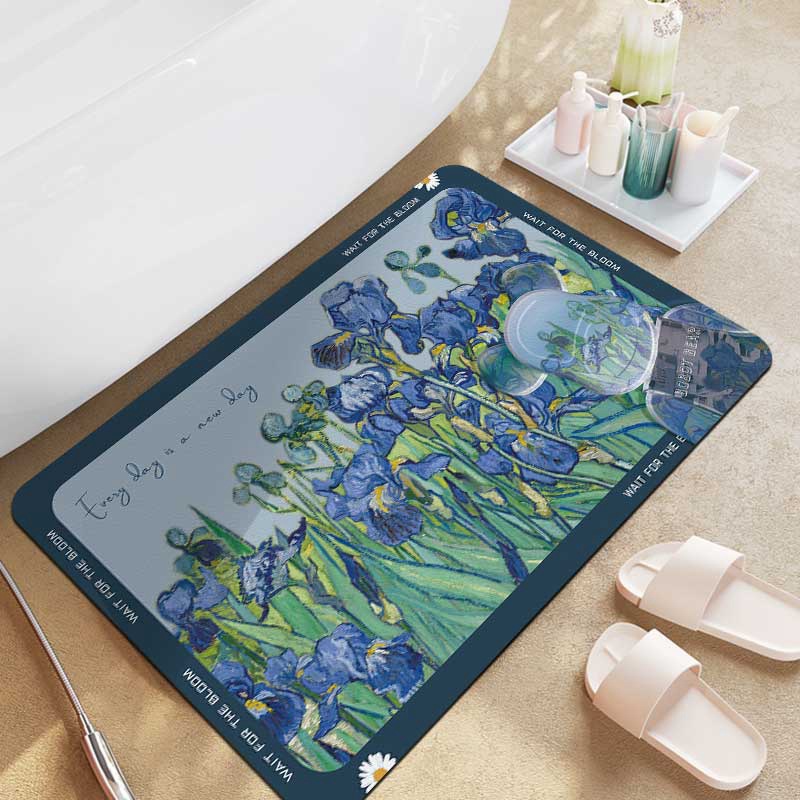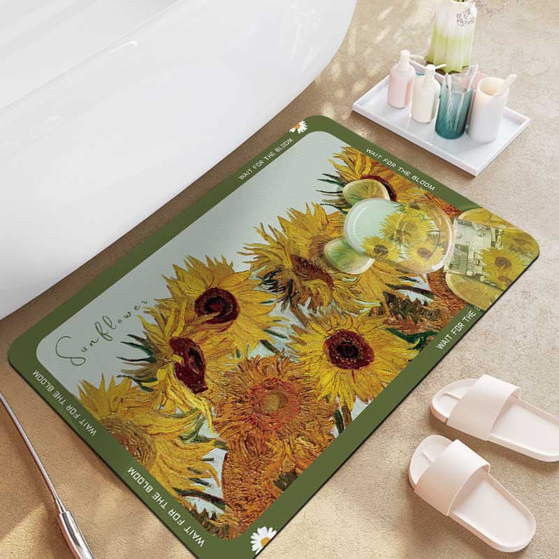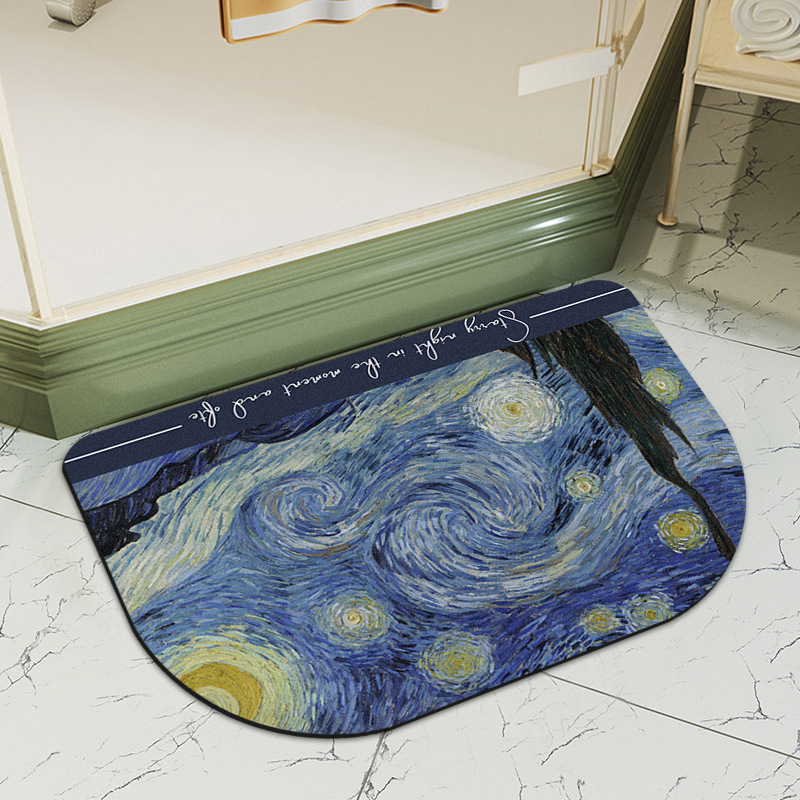 욕실 흡수성 매트 속건 발 매트 반 고흐 유명한 그림 반원형 규조 진흙 화장실 문 매트 미끄럼 방지 매트스토어 가기