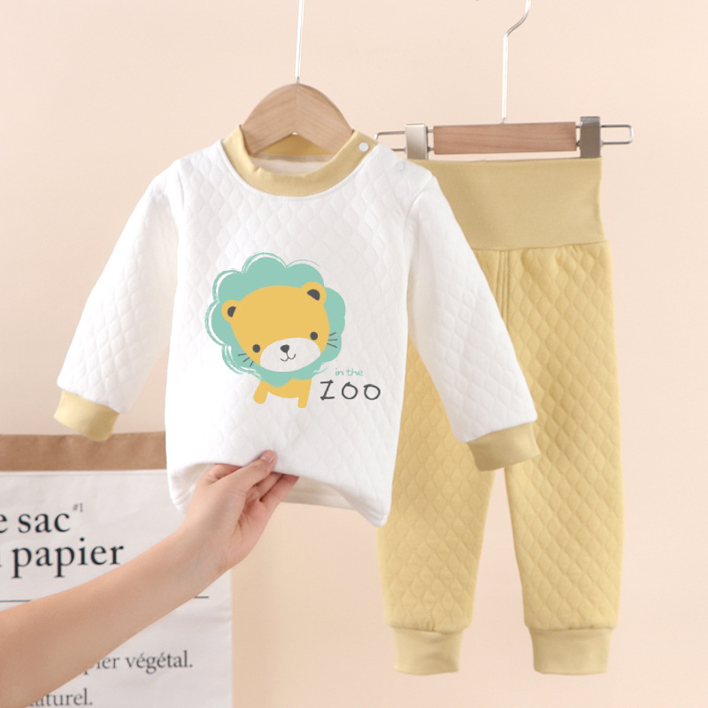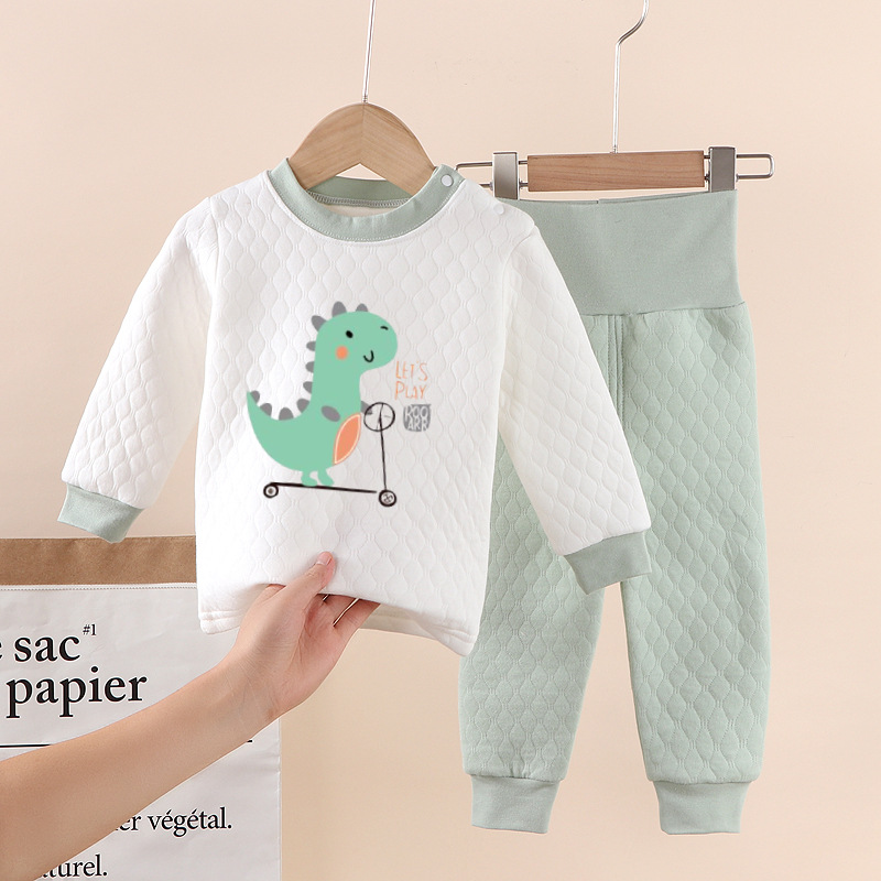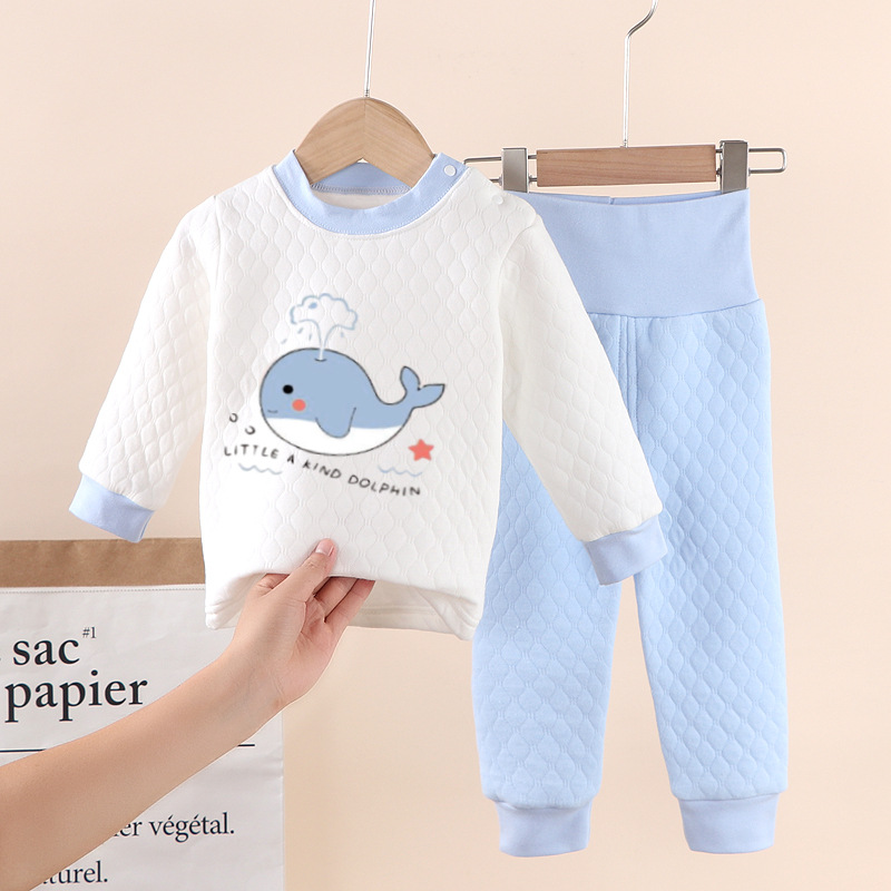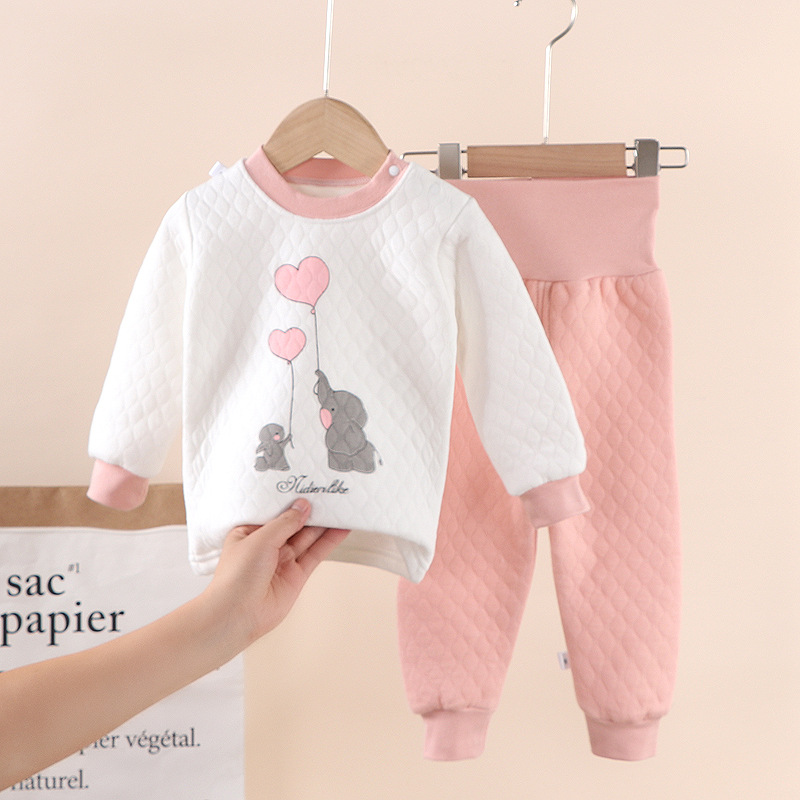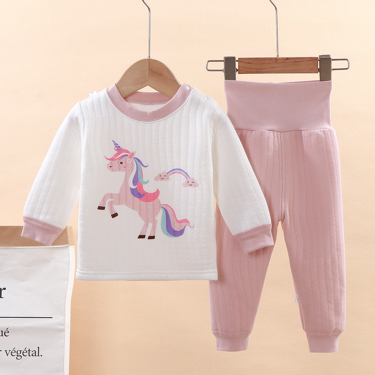 아동용 보온 속옷, 하이웨이스트 배 보호복, 면 베이비 가을 옷과 긴 바지, 3겹 보온 및 두꺼운 아동복
