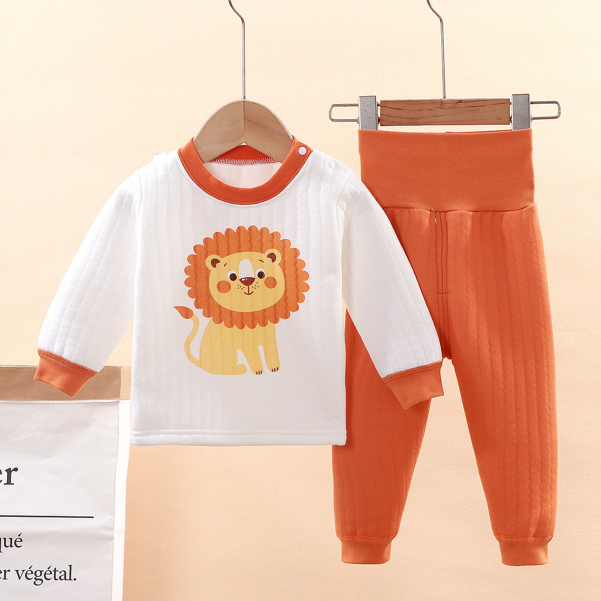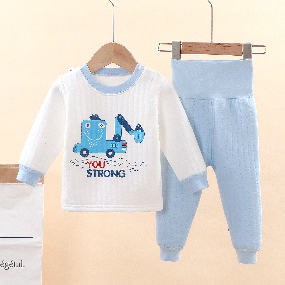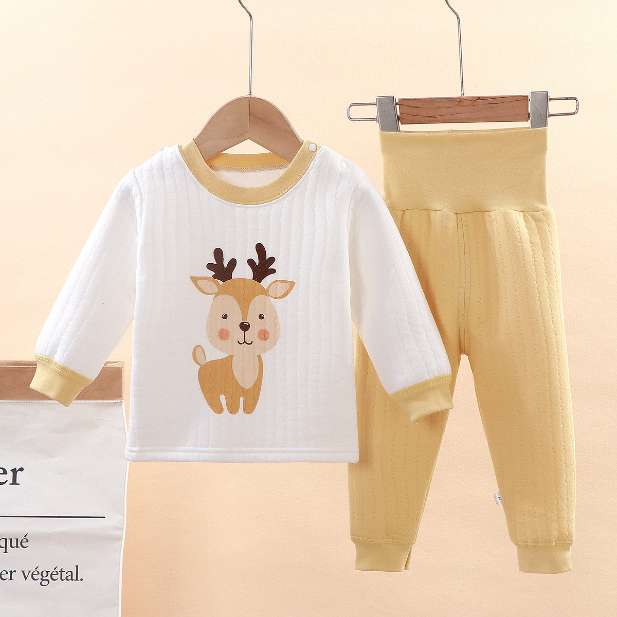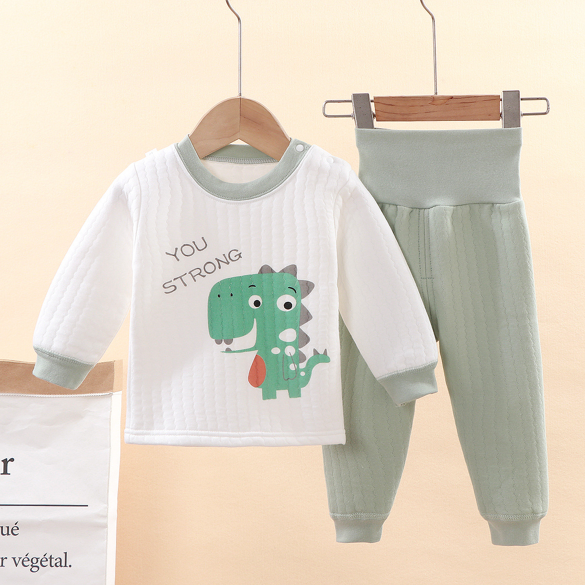 아동용 보온 속옷, 하이웨이스트 배 보호복, 면 베이비 가을 옷과 긴 바지, 3겹 보온 및 두꺼운 아동복
