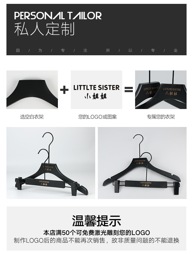 블랙 솔리드 우드 팬츠 랙 클립 홈 침실 옷장 의류 매장 특수 나무 옷걸이 미끄럼 방지 배치스토어 가기