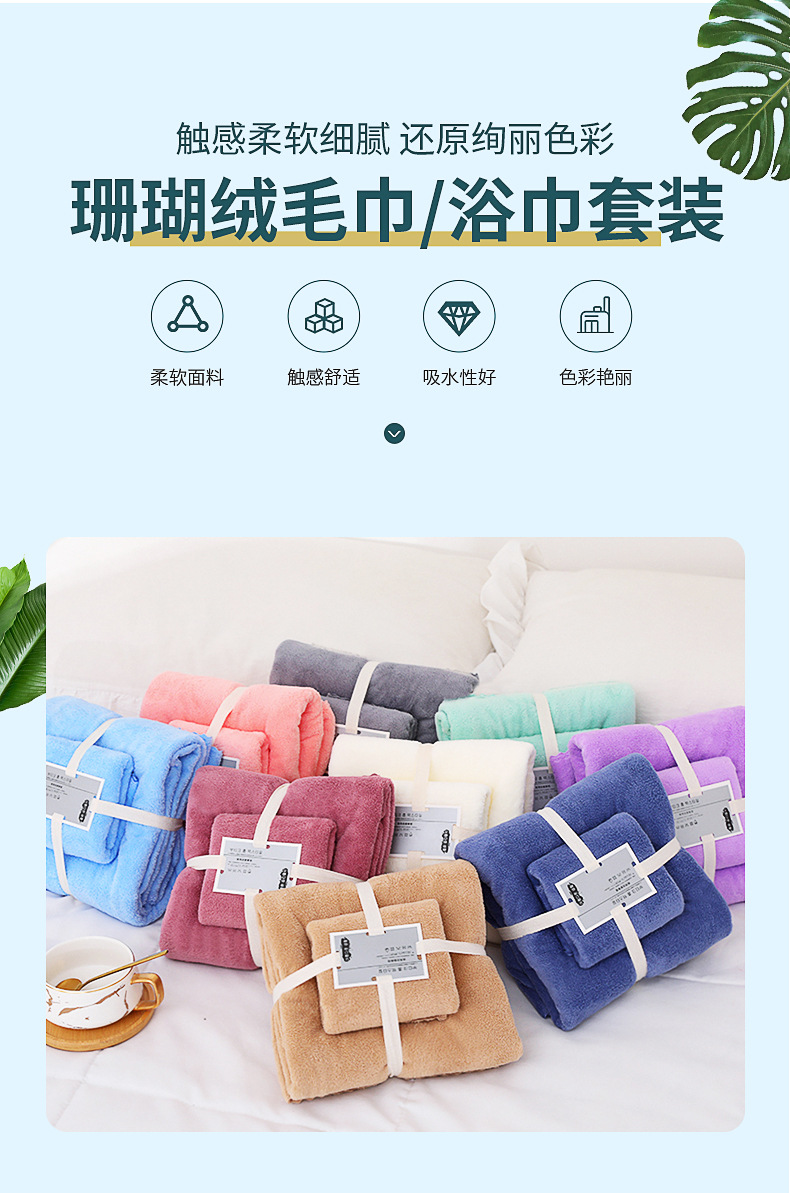 도매 산호 양털 목욕 수건 세트 가정용 세안 부드러운 어머니와 어머니 세트 수건 두꺼운 흡수성 선물 수건스토어 가기