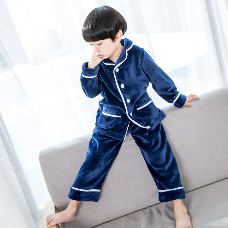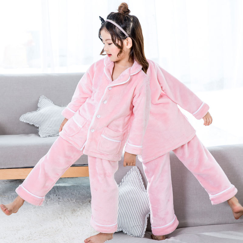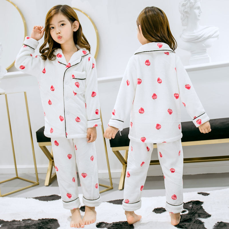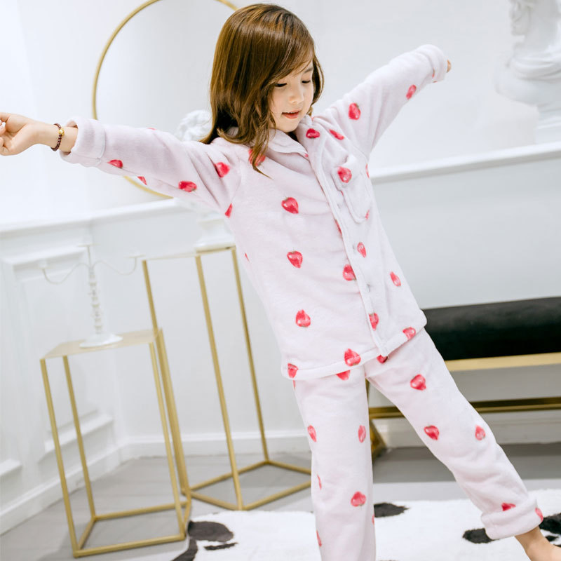 여아 잠옷 가을과 겨울 기모 두꺼운 산호 양털 부모-자식 가정 옷 세트 소년 잠옷 플란넬스토어 가기