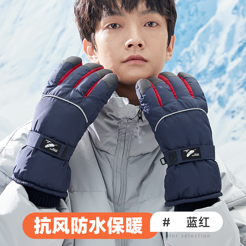 스키 장갑 남성용 사이클링 방한 장갑 기모 두꺼운 따뜻한 면 장갑 야외 사이클링 장갑 남자의 겨울