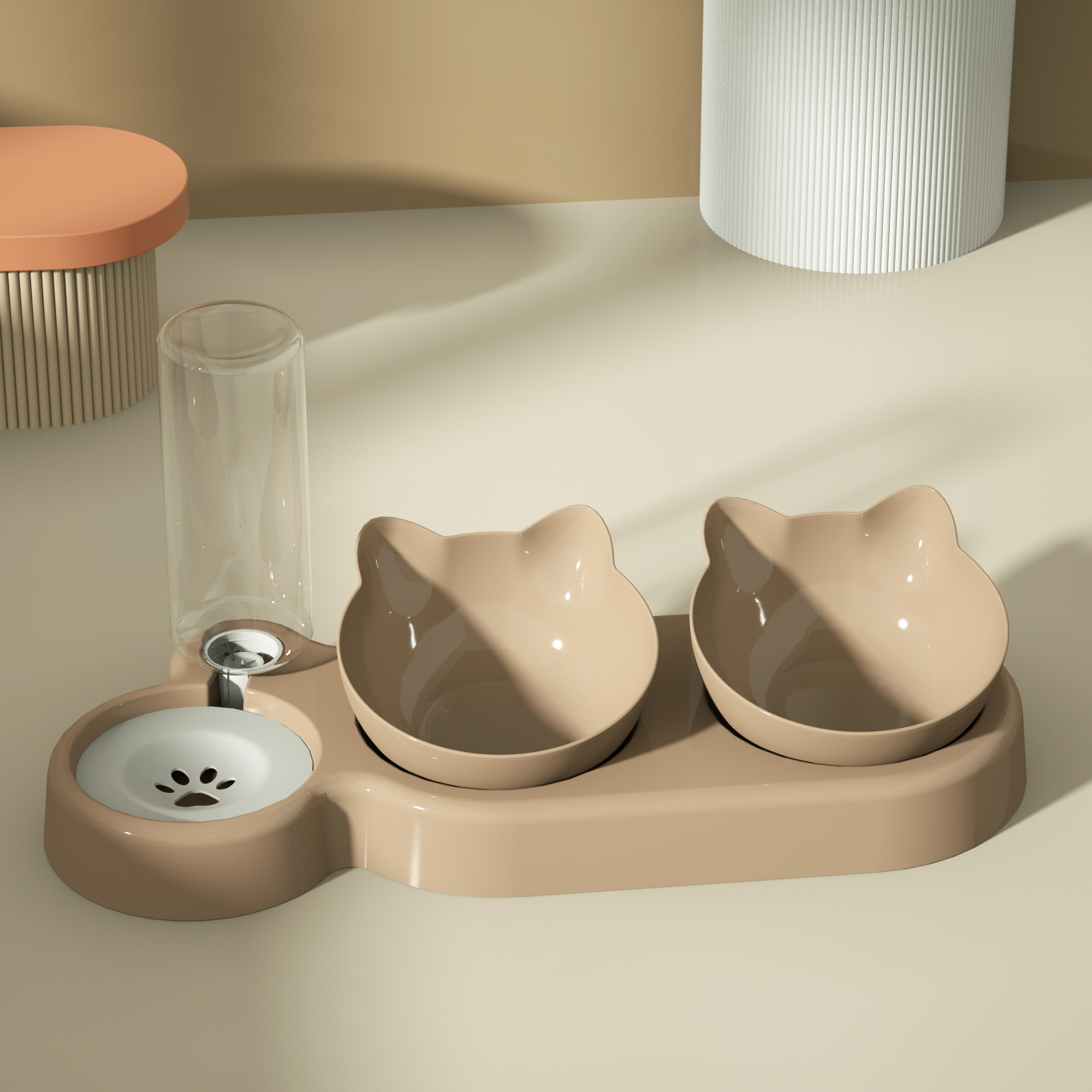• 고양이 모양의 세 그릇 [어두운 핑크] 분말 그릇