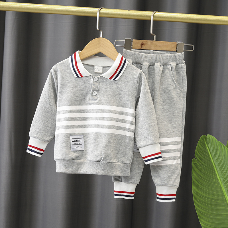 소년 가을 세트 2023 새로운 아기 소녀 봄과 가을 가짜 투피스 티셔츠 어린이 스포츠 바지 투피스 세트 패션스토어 가기