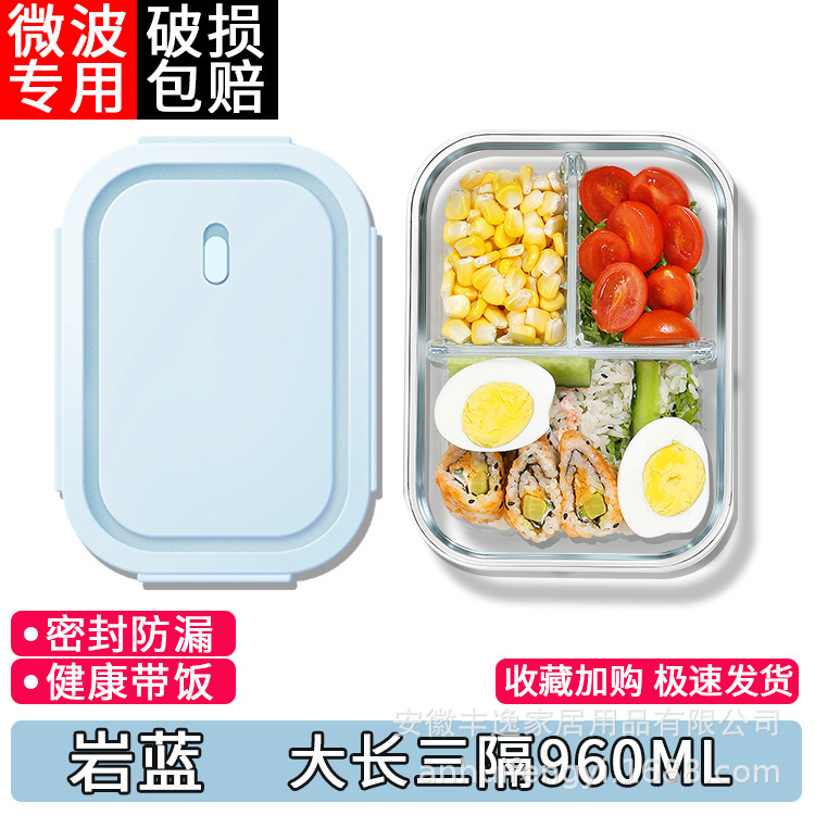 전자 레인지 가열 도시락 냉장고 냉장 보존 그릇 휴대용 도시락에 적합한 고온 및 저온 저항 유리 보존 상자스토어 가기