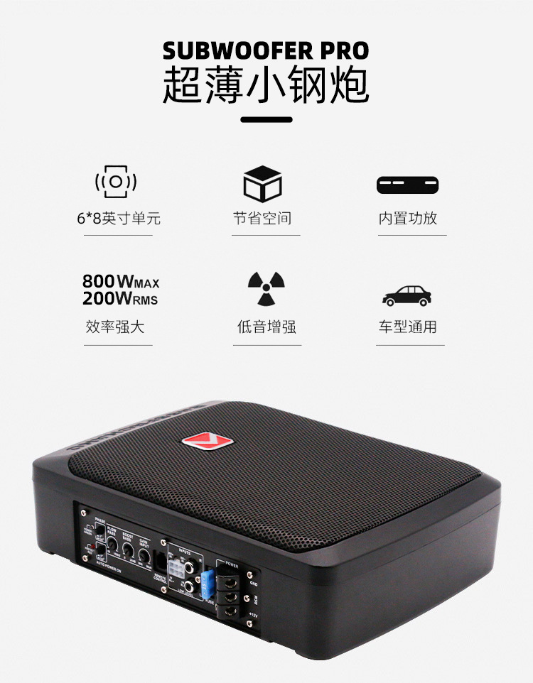 공장 도매 자동차 서브 우퍼 알루미늄 합금 12v 자동차 좌석 6*8 인치 초박형 활성 자동차 서브 우퍼스토어 가기