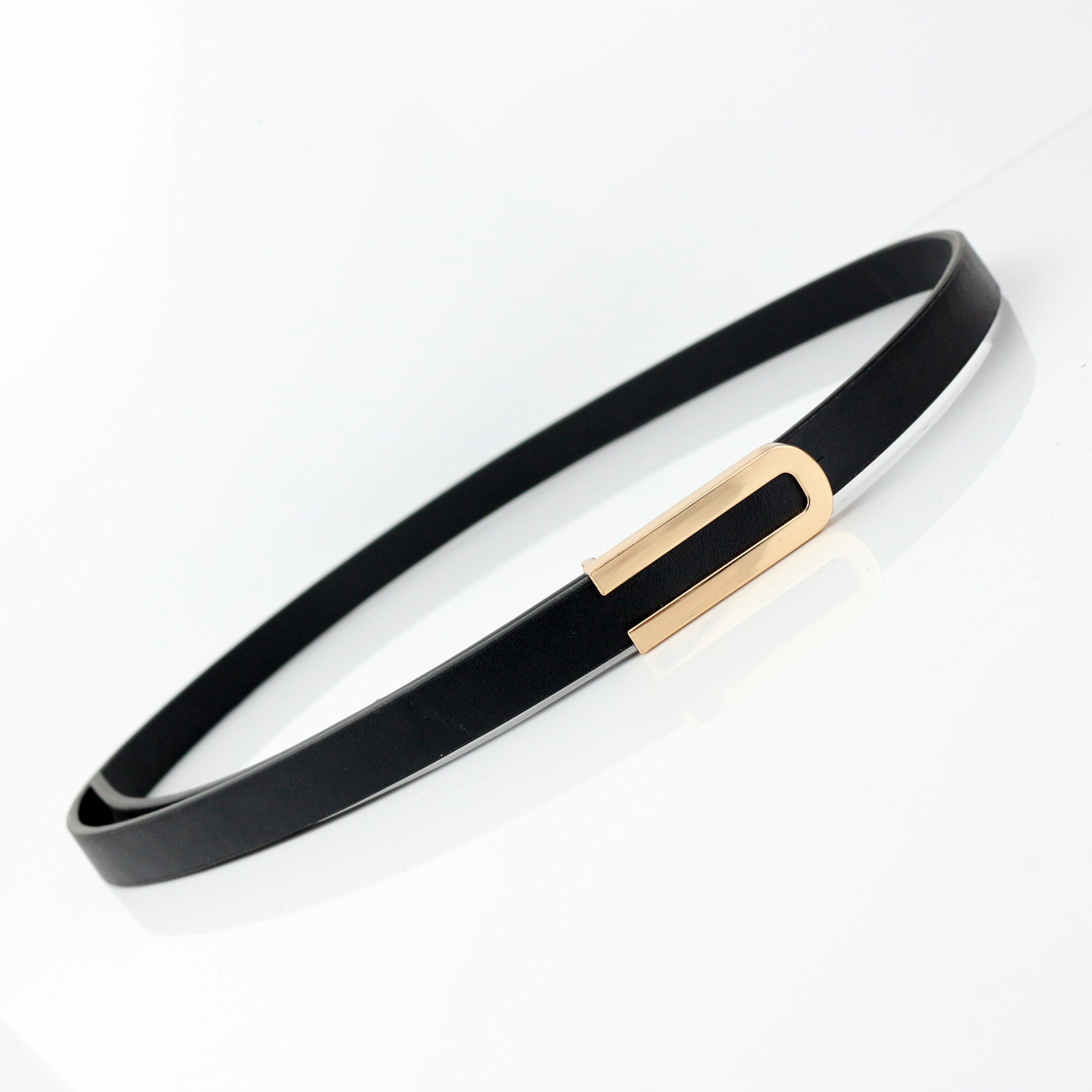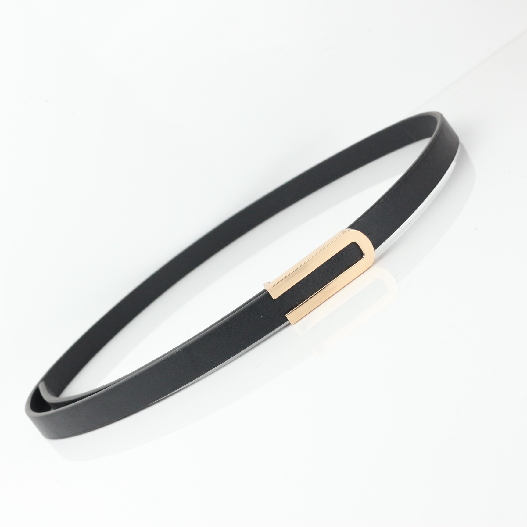 时尚百搭黑色牛皮细皮带女装饰配连衣裙子简约韩版西装白色小腰带