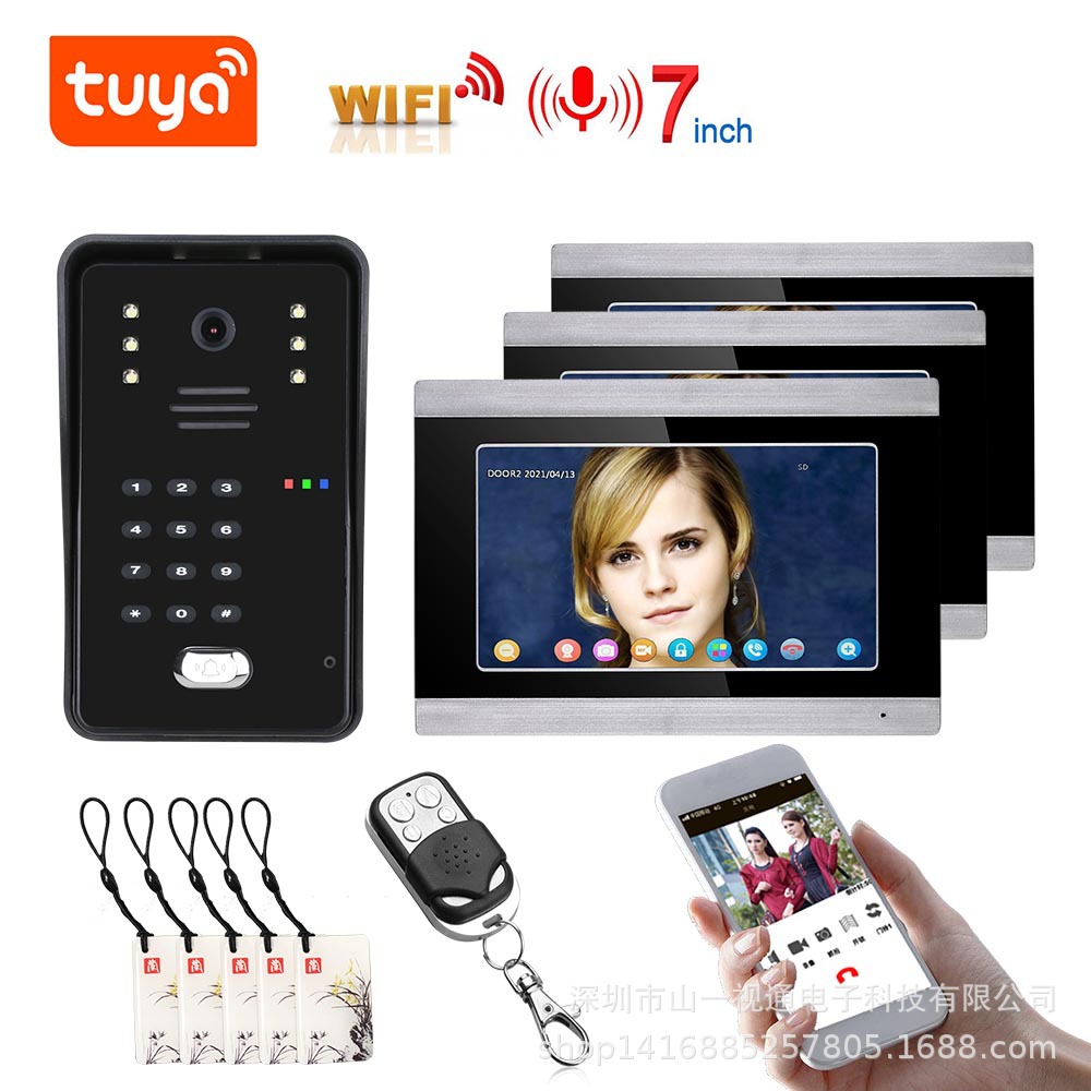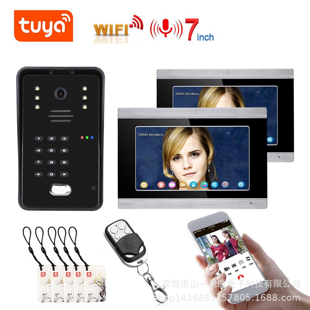 6.室内显示器可以支持连接5个手机APP用户,手机可以监控和解锁,它还可以支持访客与Tuya Smart APP之间的通信,这意味着您可以随时随地与他们交谈。