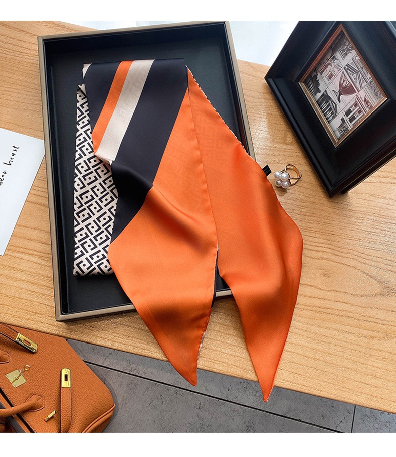 2021 새로운 기하학적 패턴 모조 실크 스카프 장식 쇄골 얇은 좁은 긴 스카프 따뜻한 머리 벨트 넥타이 가방