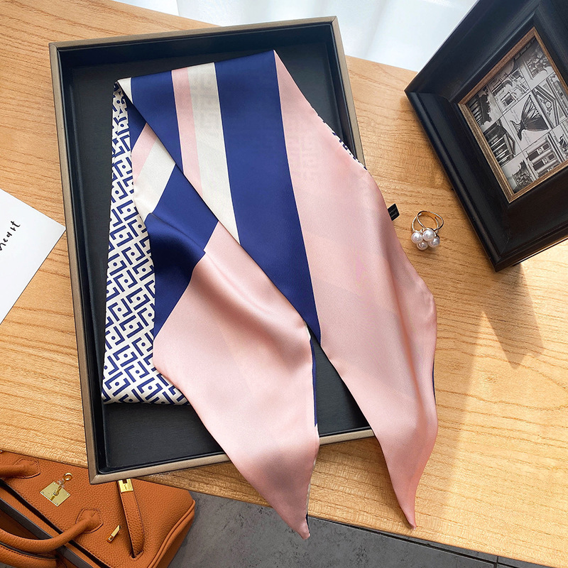 2021 새로운 기하학적 패턴 모조 실크 스카프 장식 쇄골 얇은 좁은 긴 스카프 따뜻한 머리 벨트 넥타이 가방스토어 가기