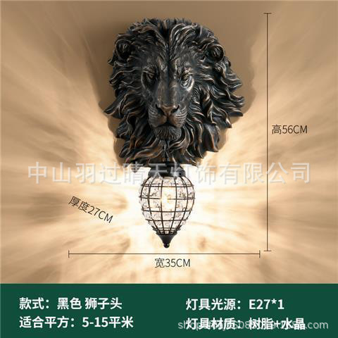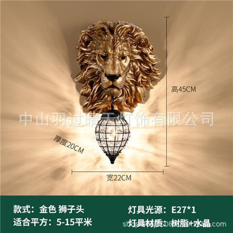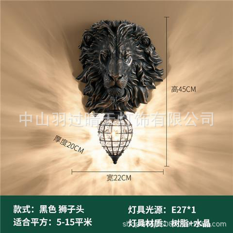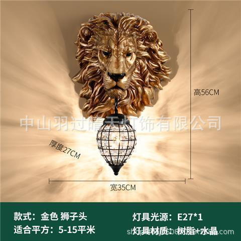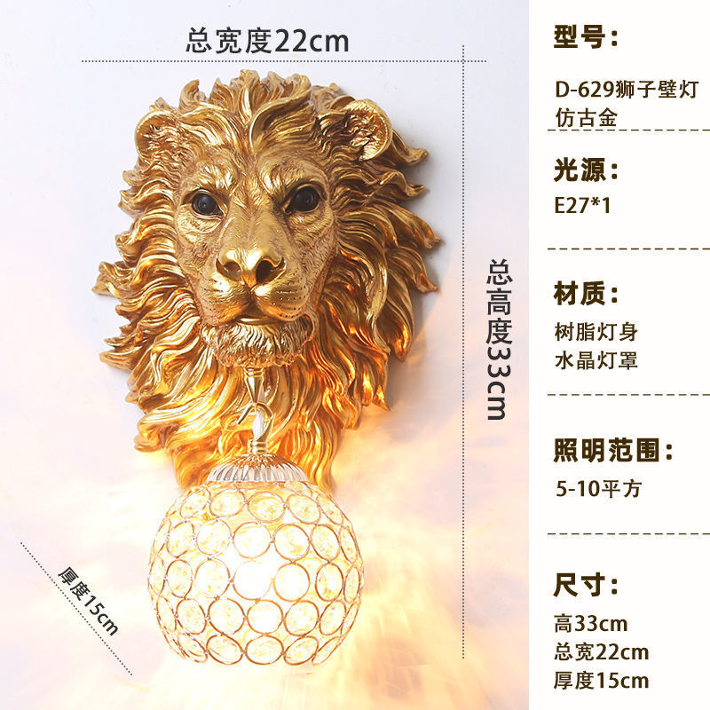 유럽식 복고풍 사자 머리 실내 대형 벽 램프 거실 인터넷 연예인 바 레스토랑 통로 복도 바 장식 램프