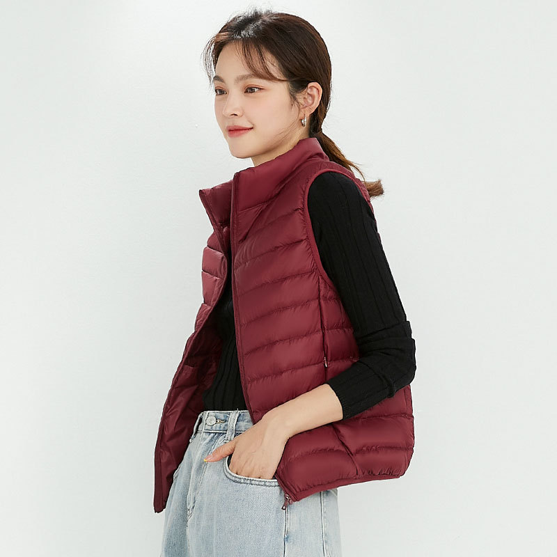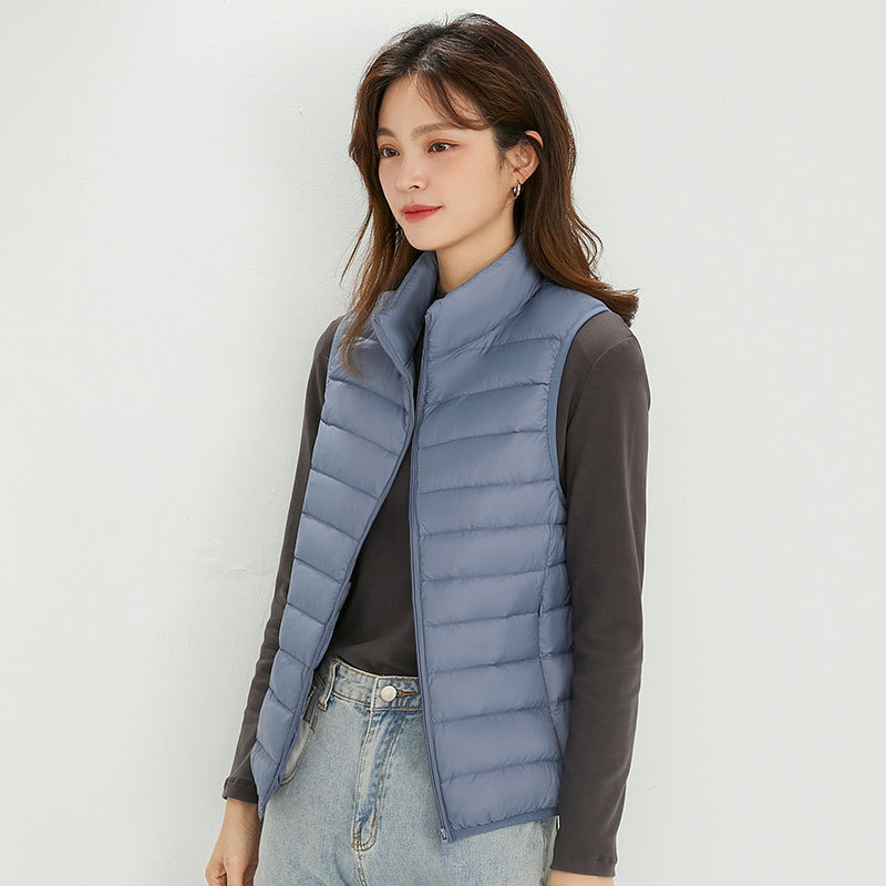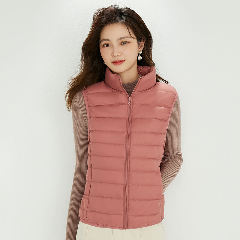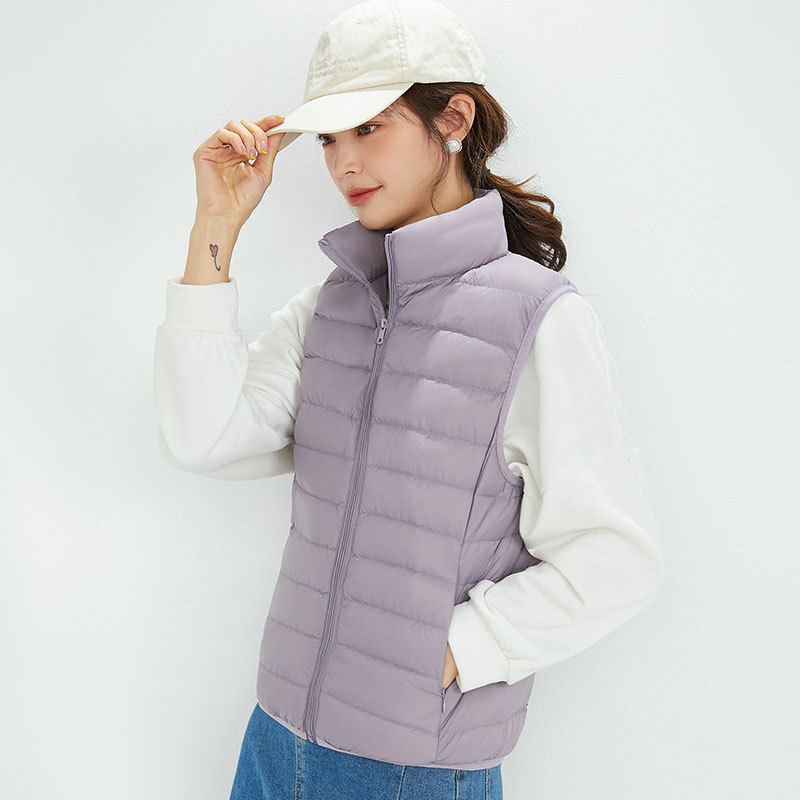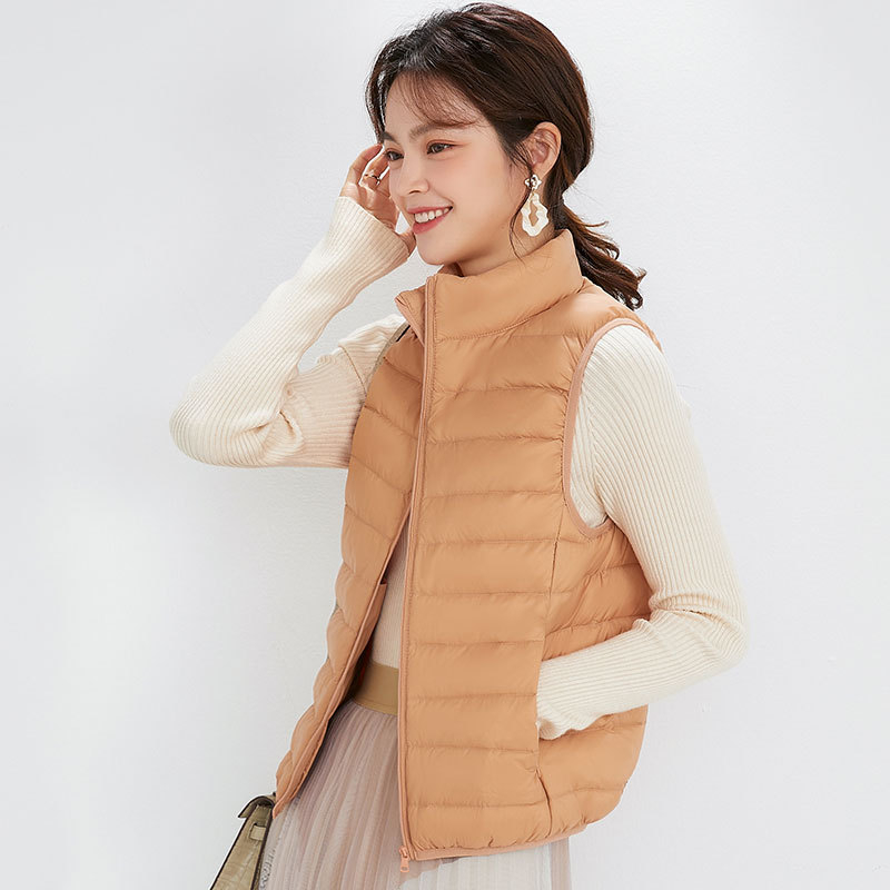 2024 가을과 겨울 새로운 짧은 다운 재킷 여성의 가벼운 수직 칼라 착용 얇은 플러스 사이즈 조끼 여성 제조 업체 도매