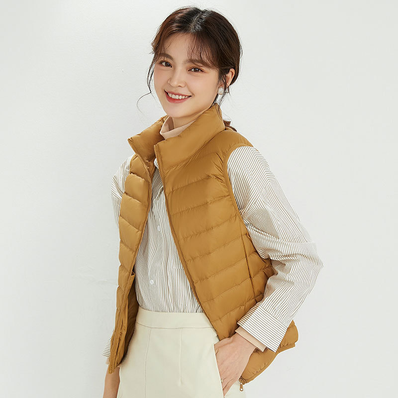 2024 가을과 겨울 새로운 짧은 다운 재킷 여성의 가벼운 수직 칼라 착용 얇은 플러스 사이즈 조끼 여성 제조 업체 도매스토어 가기
