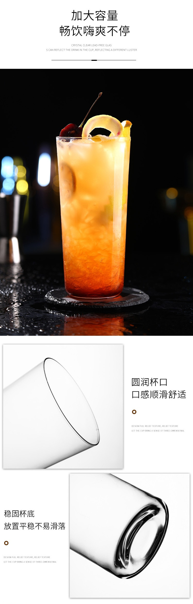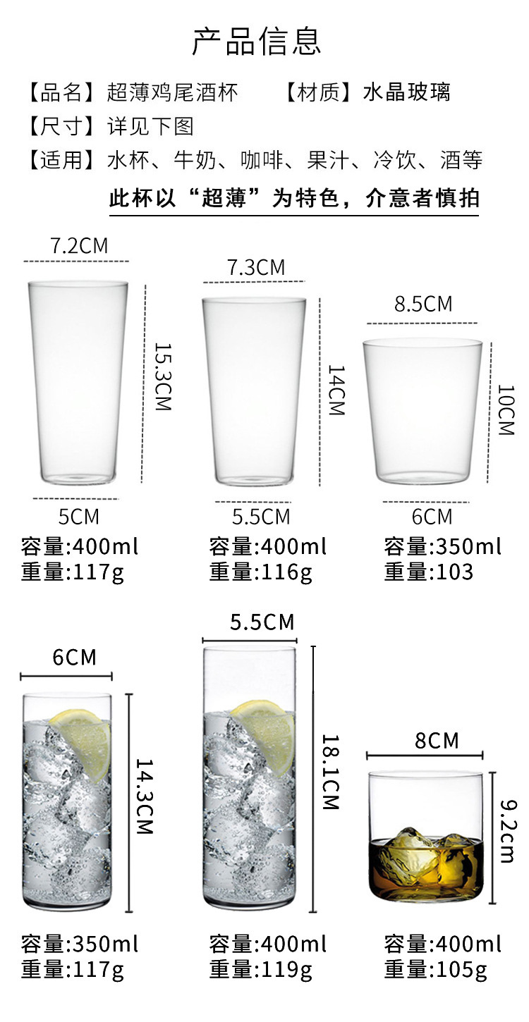 일본 콜린 컵 크리스탈 유리 칵테일 컵 하이 웨이브 컵 초박형 긴 주스 차가운 음료 컵 유리 차 컵스토어 가기