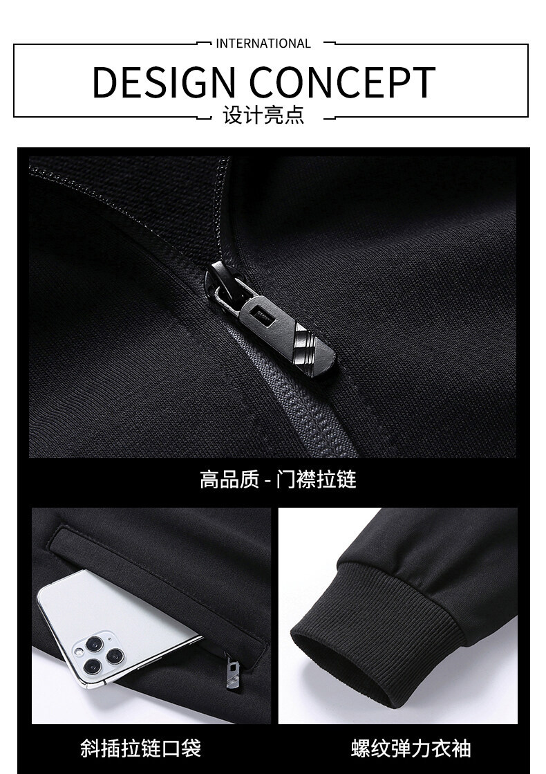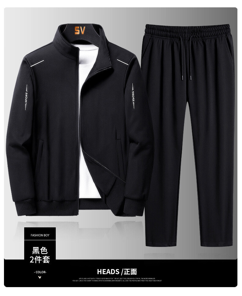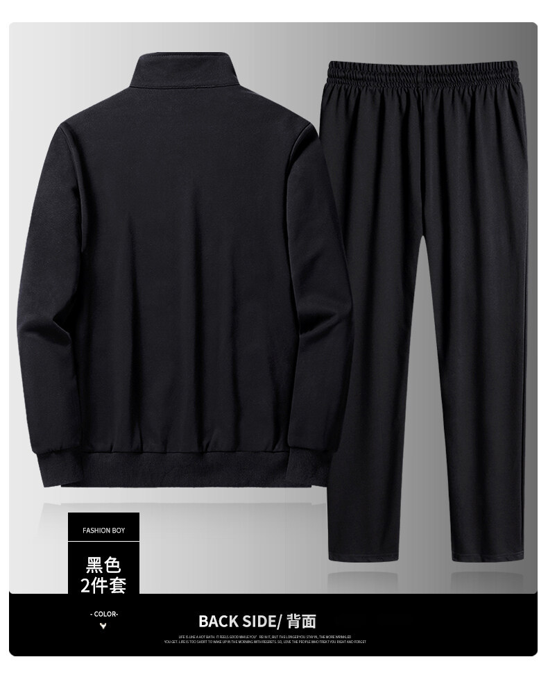 가을 남자의 레저 스포츠 세트 단색 스탠드 칼라 투피스 세트 느슨한 스트레이트 바지 플러스 사이즈 스웨터 세트스토어 가기