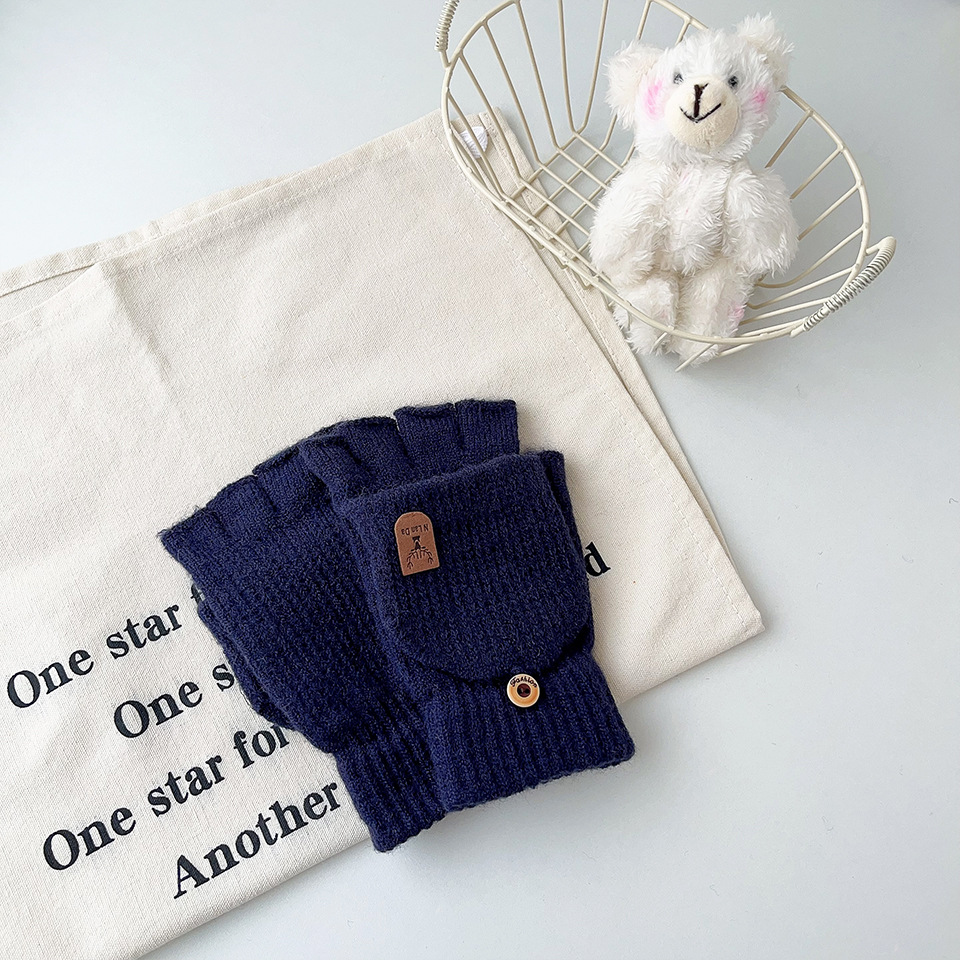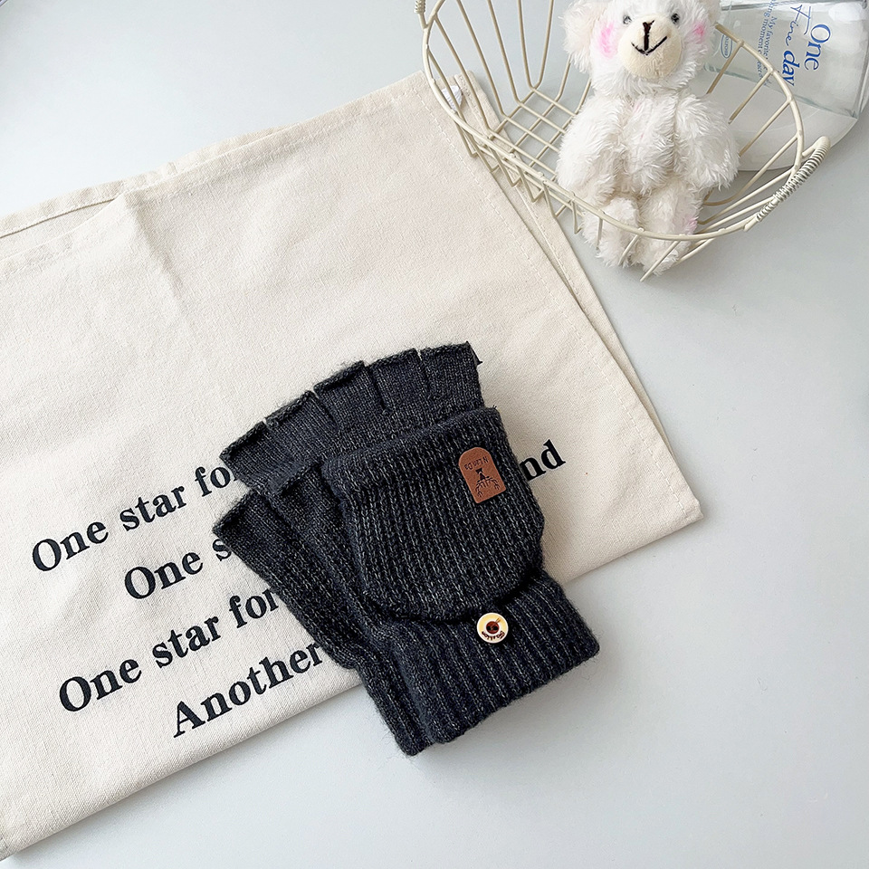 비즈니스 남성 장갑 겨울 따뜻한 한국 학생 사이클링 쓰기 반 손가락 플립 이중 목적 단색 심플 패션스토어 가기