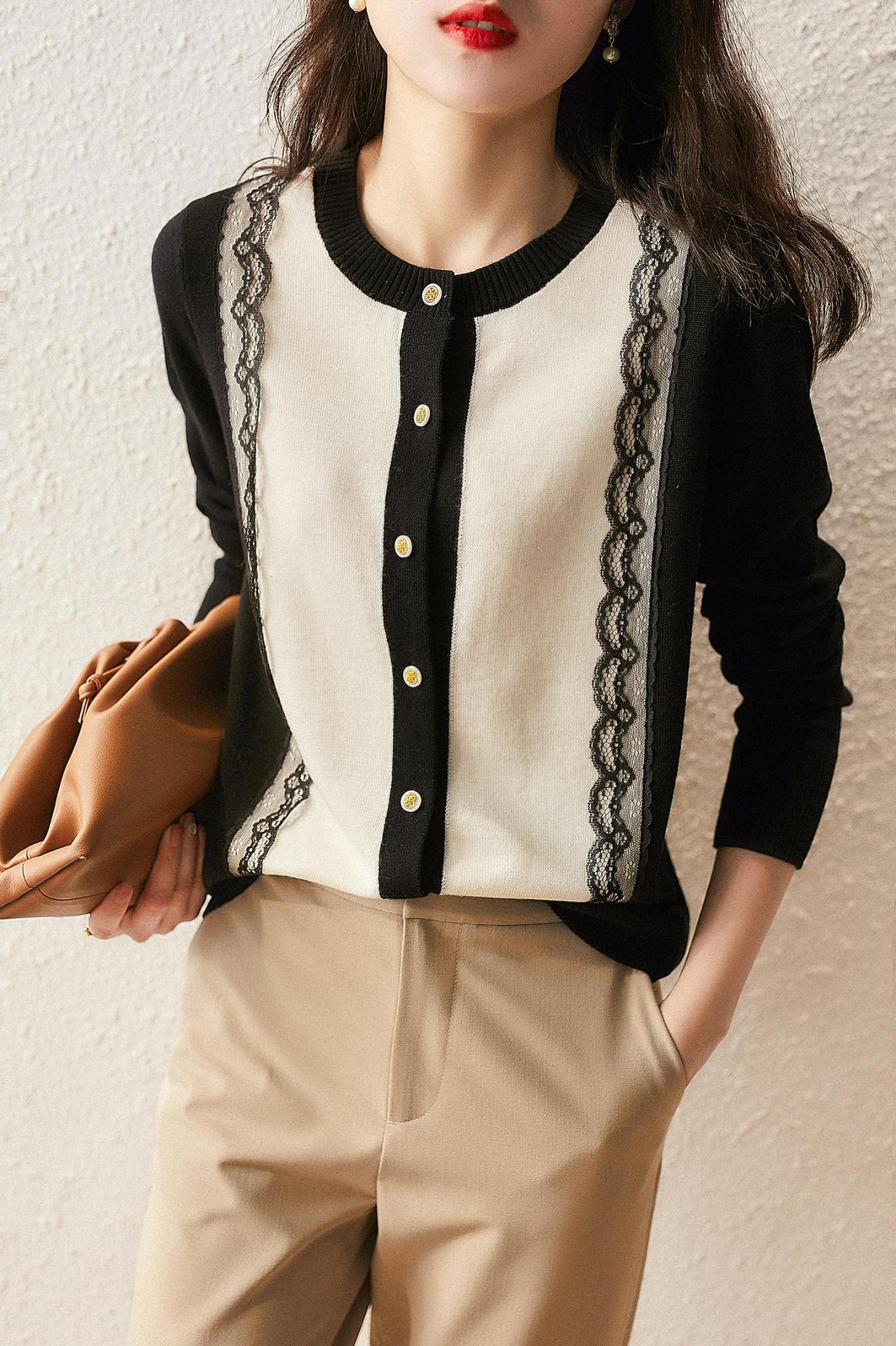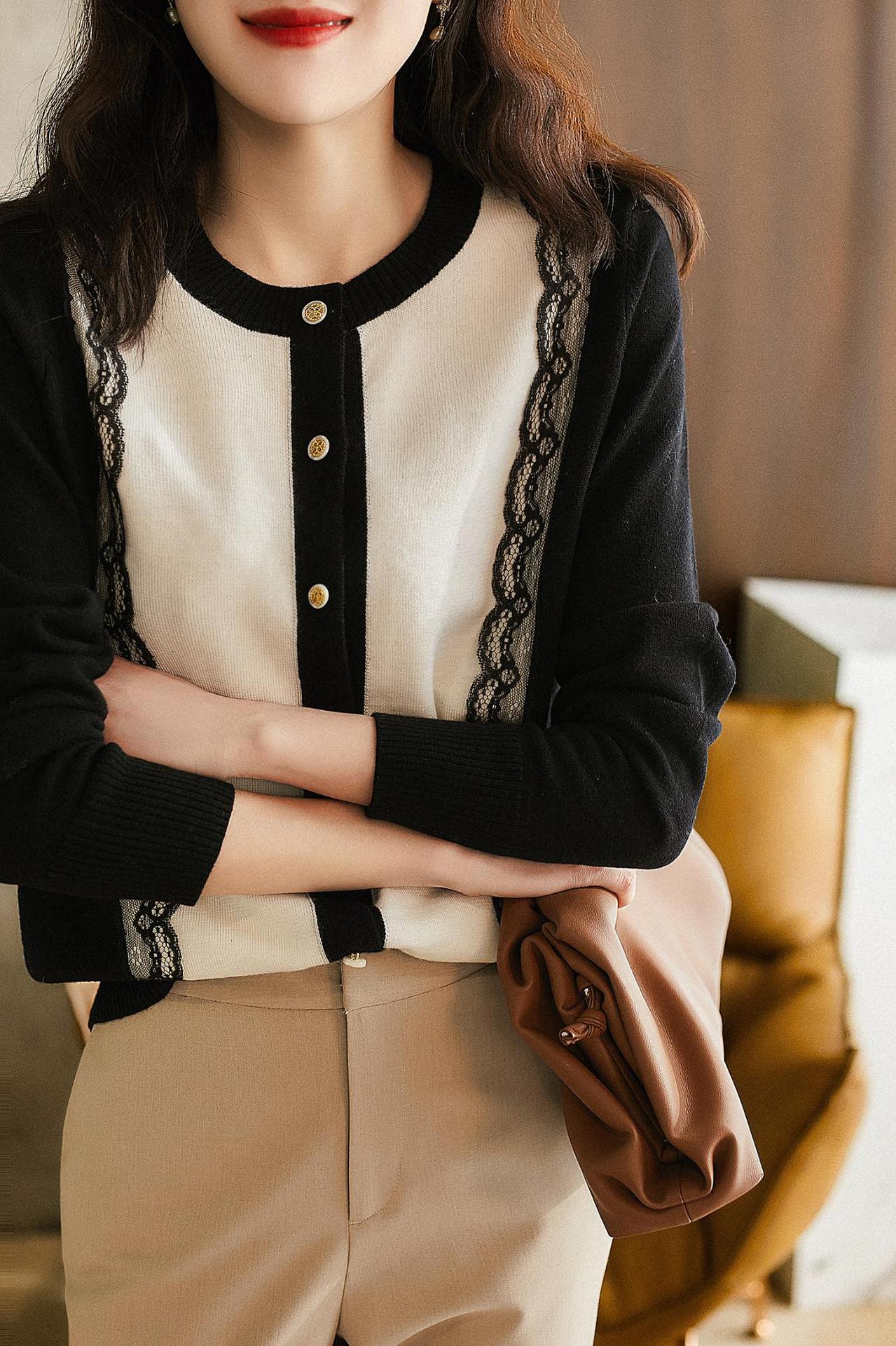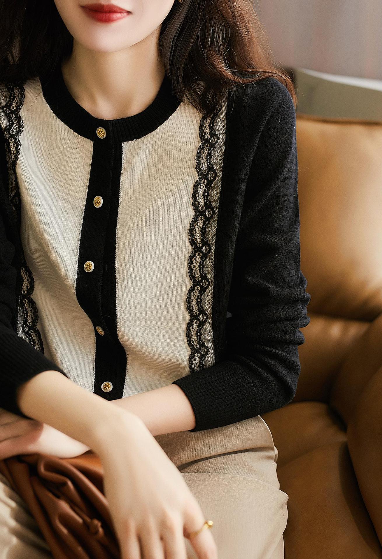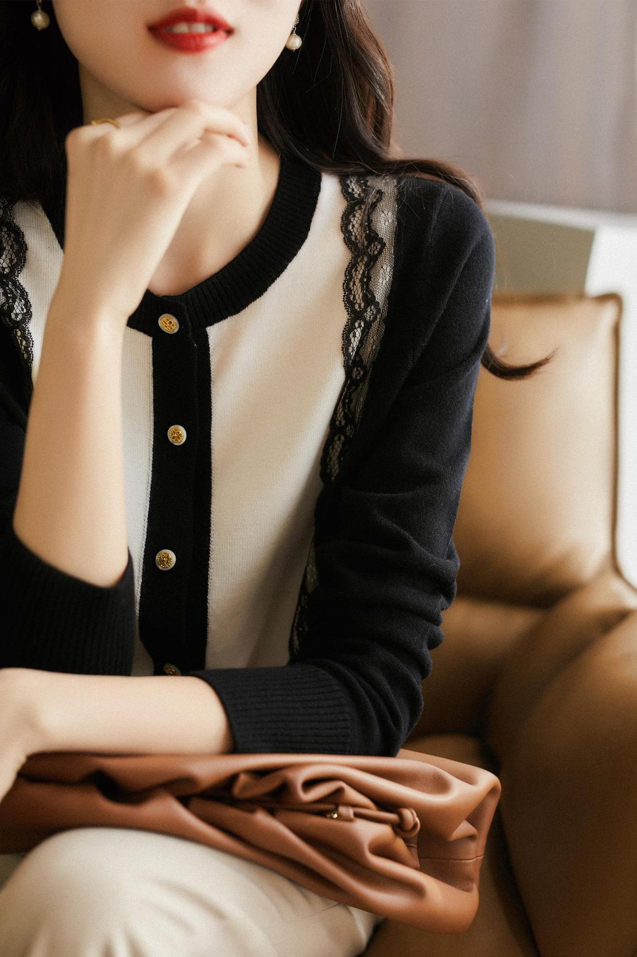 여성 봄, 가을 2022 새로운 스웨터 한국 스타일 긴 소매 탑 슬리밍 레이스 스티치 라운드 넥 니트 가디건스토어 가기