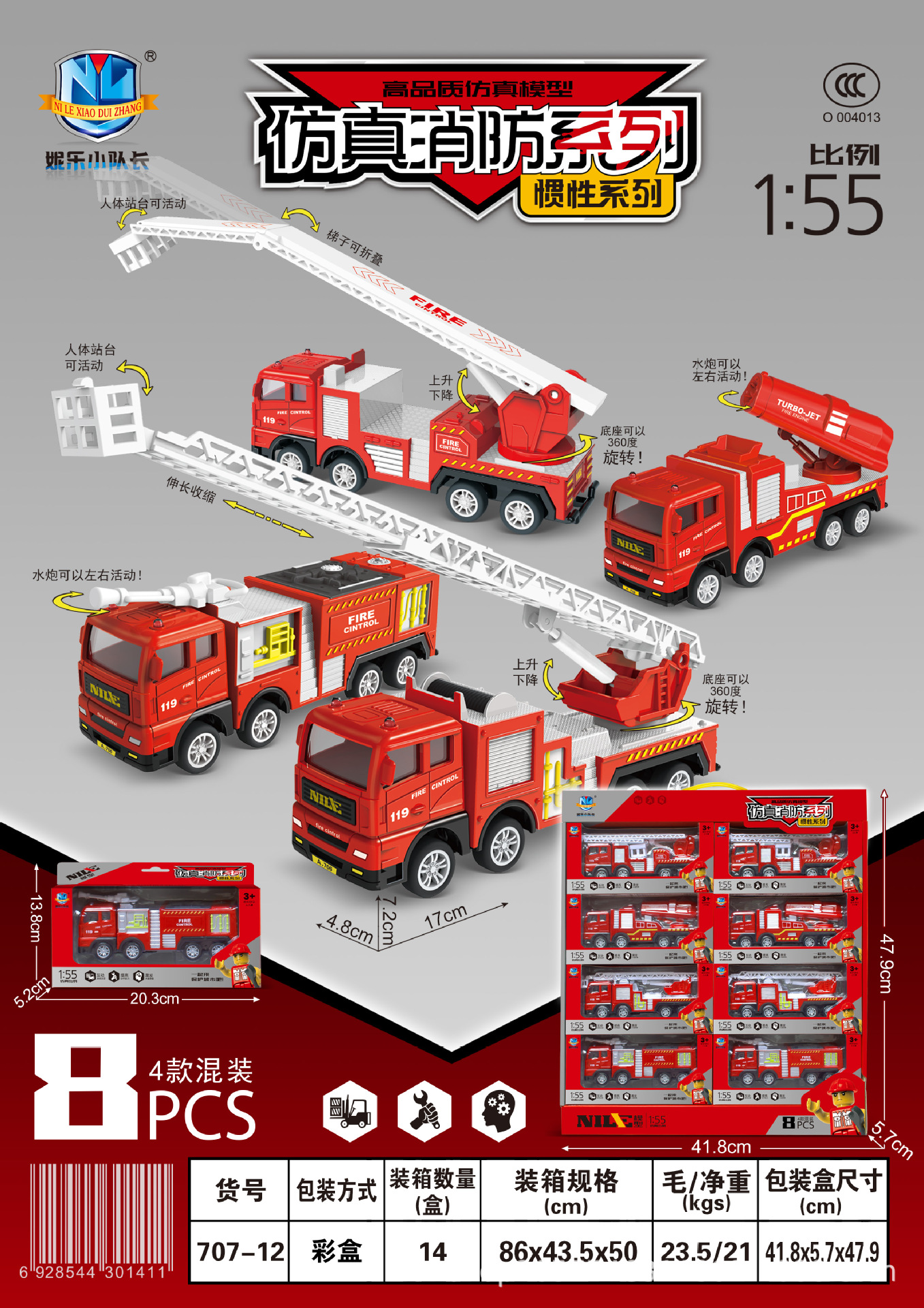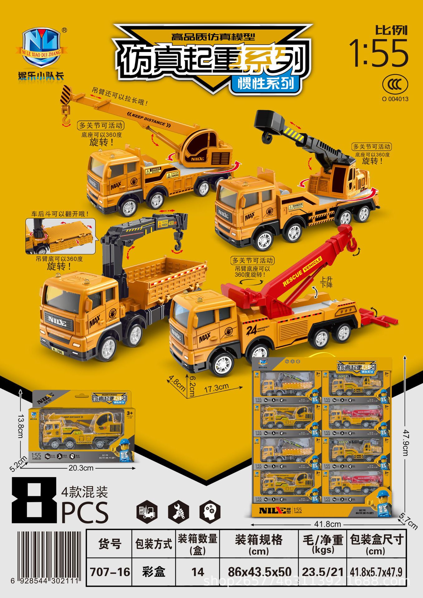 신제품 관성 소방 트럭 삽 크레인 전투기 낙하 방지 어린이 장난감 제조업체스토어 가기