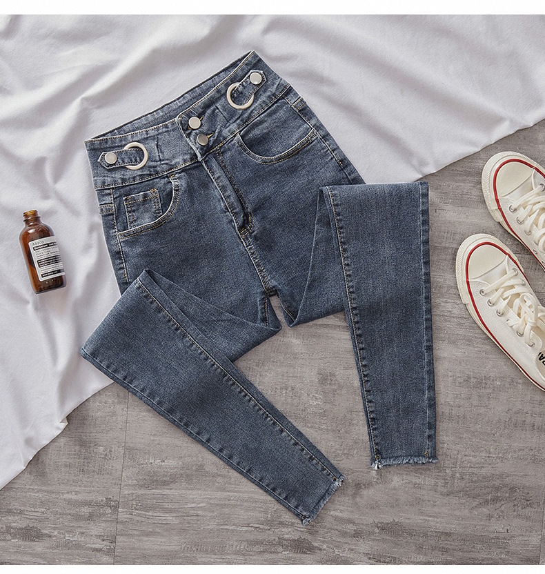 청바지 여성 바지 새로운 블랙 하이 웨이스트 슬림 핏 슬리밍 아우터 웨어 타이트 크롭 드 에지 스키니 스트레치 연필 바지