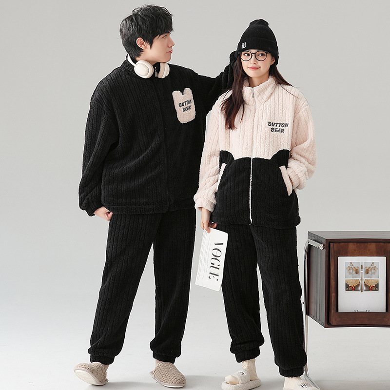 커플 잠옷 여자의 겨울 산호 양털 긴 소매 귀여운 두꺼운 플란넬 남자의 한국 스타일 아웃웨어 가디건 가정 의류