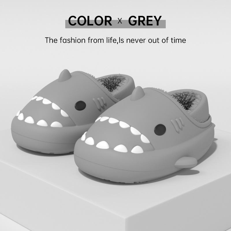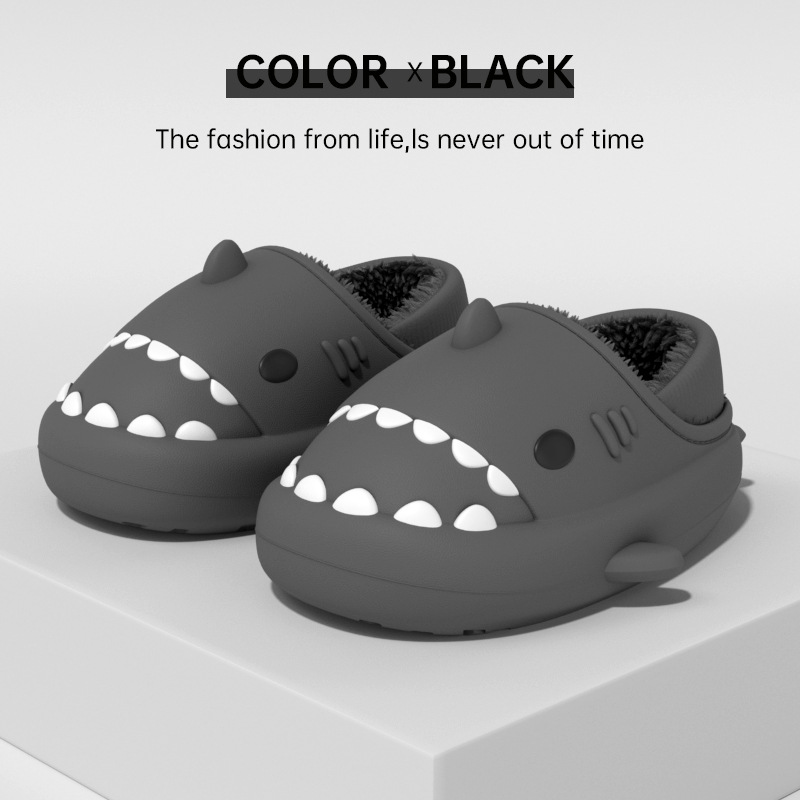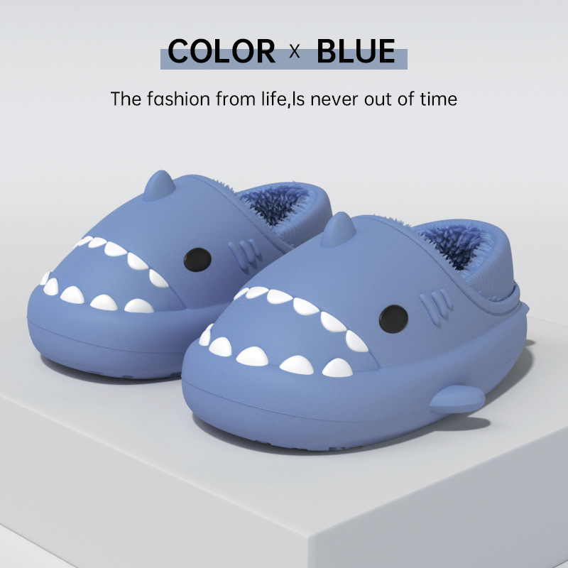 原创卡通鲨鱼拖鞋秋冬加绒版现货精准库存