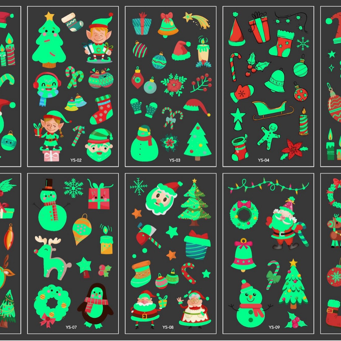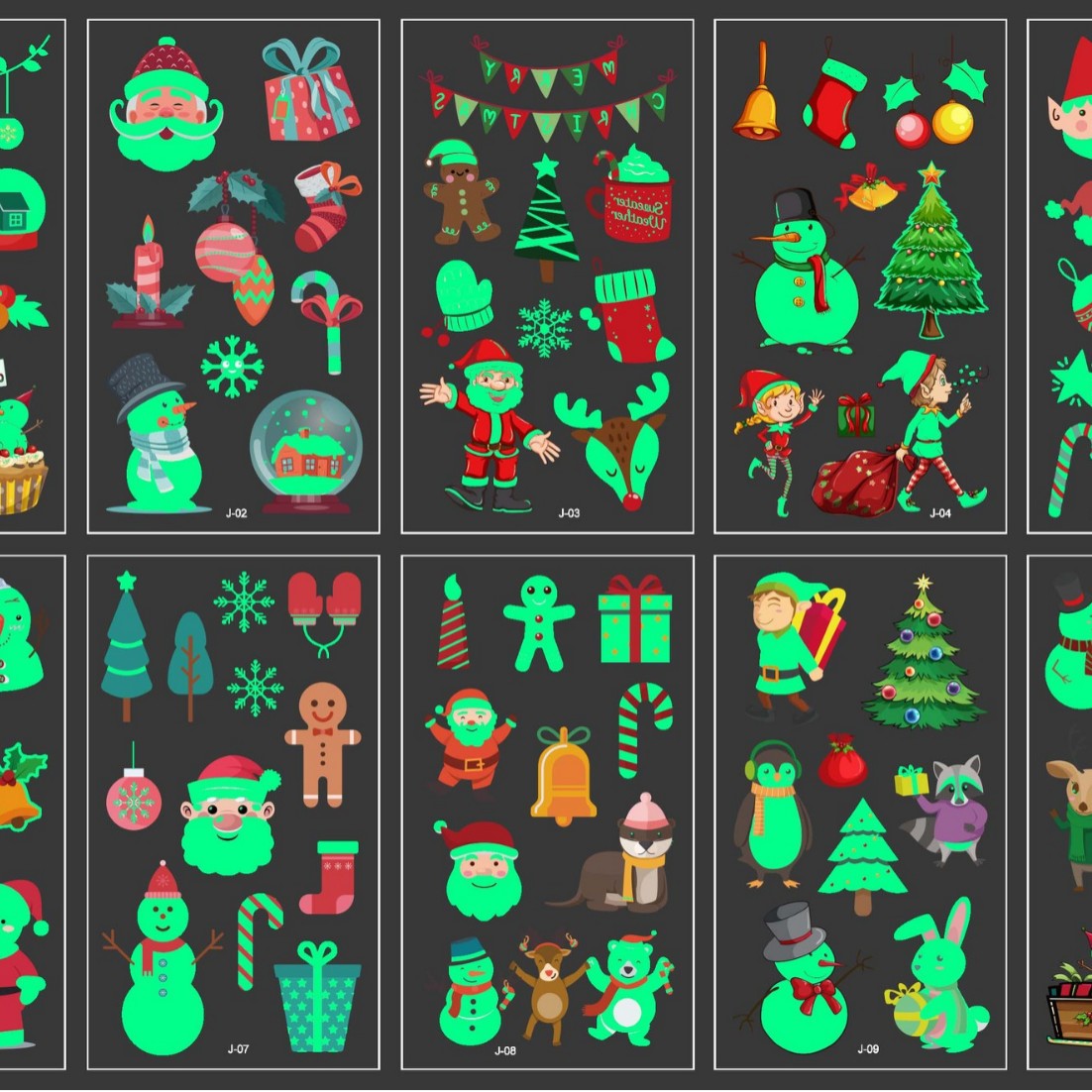 아마존 새로운 만화 크리스마스 빛나는 문신 스티커 어린이 파티 재미있는 스티커 무도회 빛나는 스티커스토어 가기