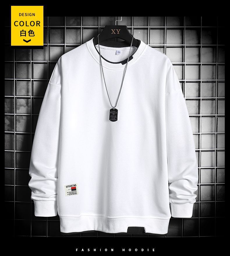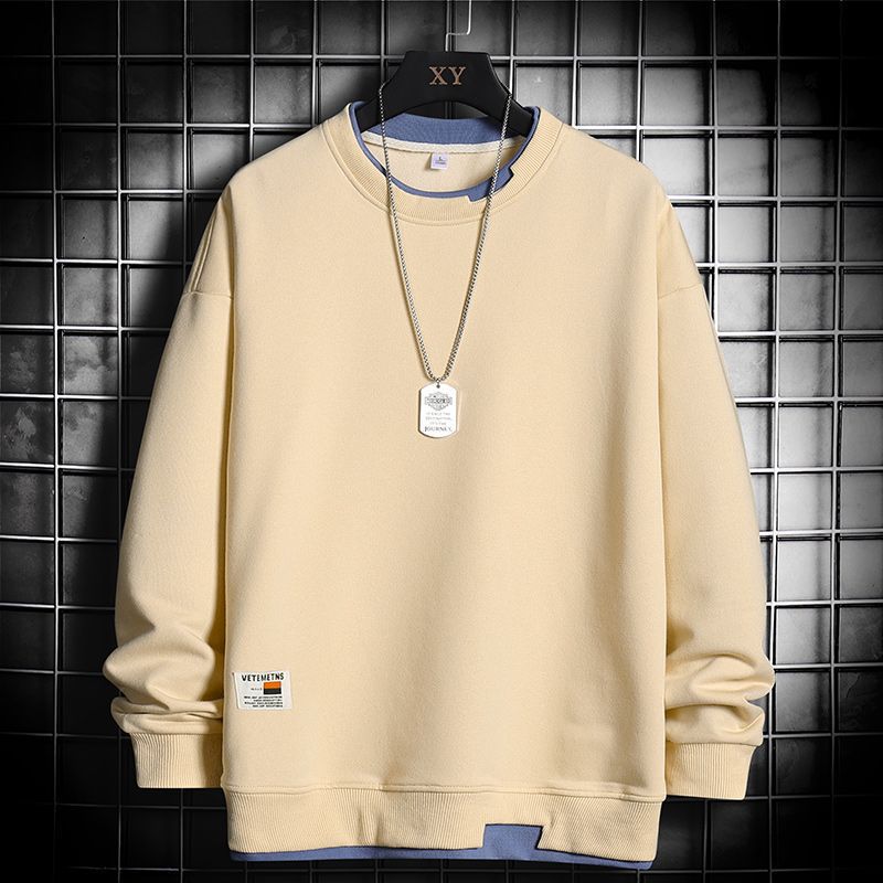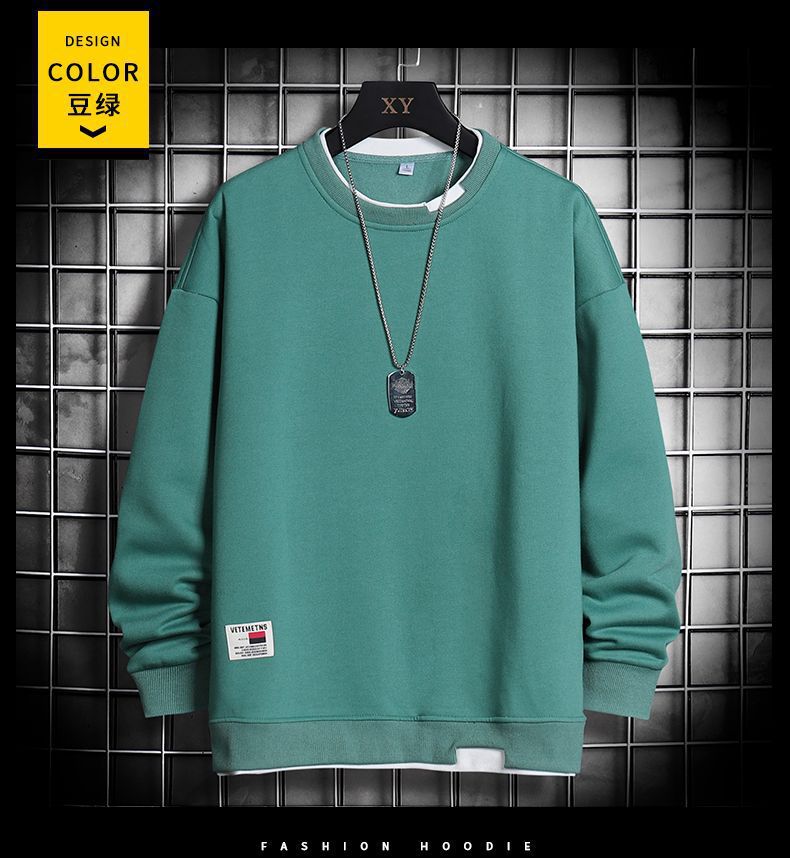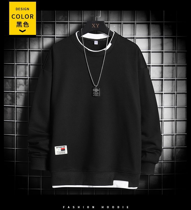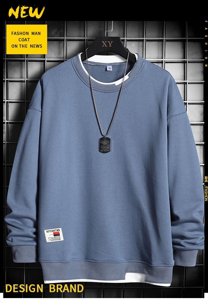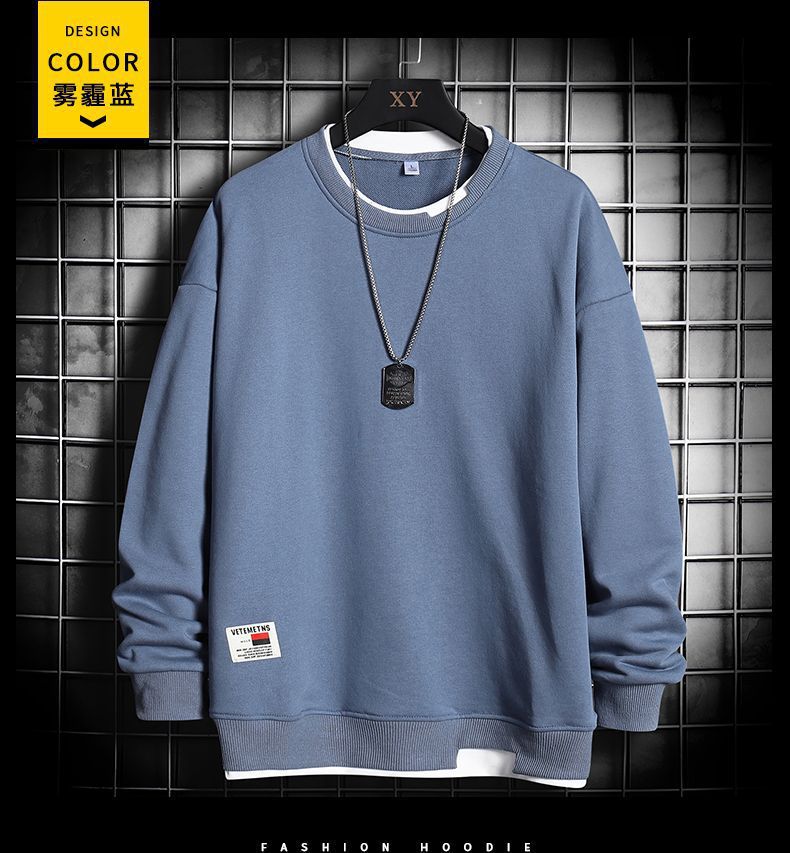 스웨터 소년 가을, 겨울 새로운 유행 ins 트렌드 후드리스 라운드 넥 풀오버 긴팔 티셔츠 가짜 투피스 루즈 탑스토어 가기