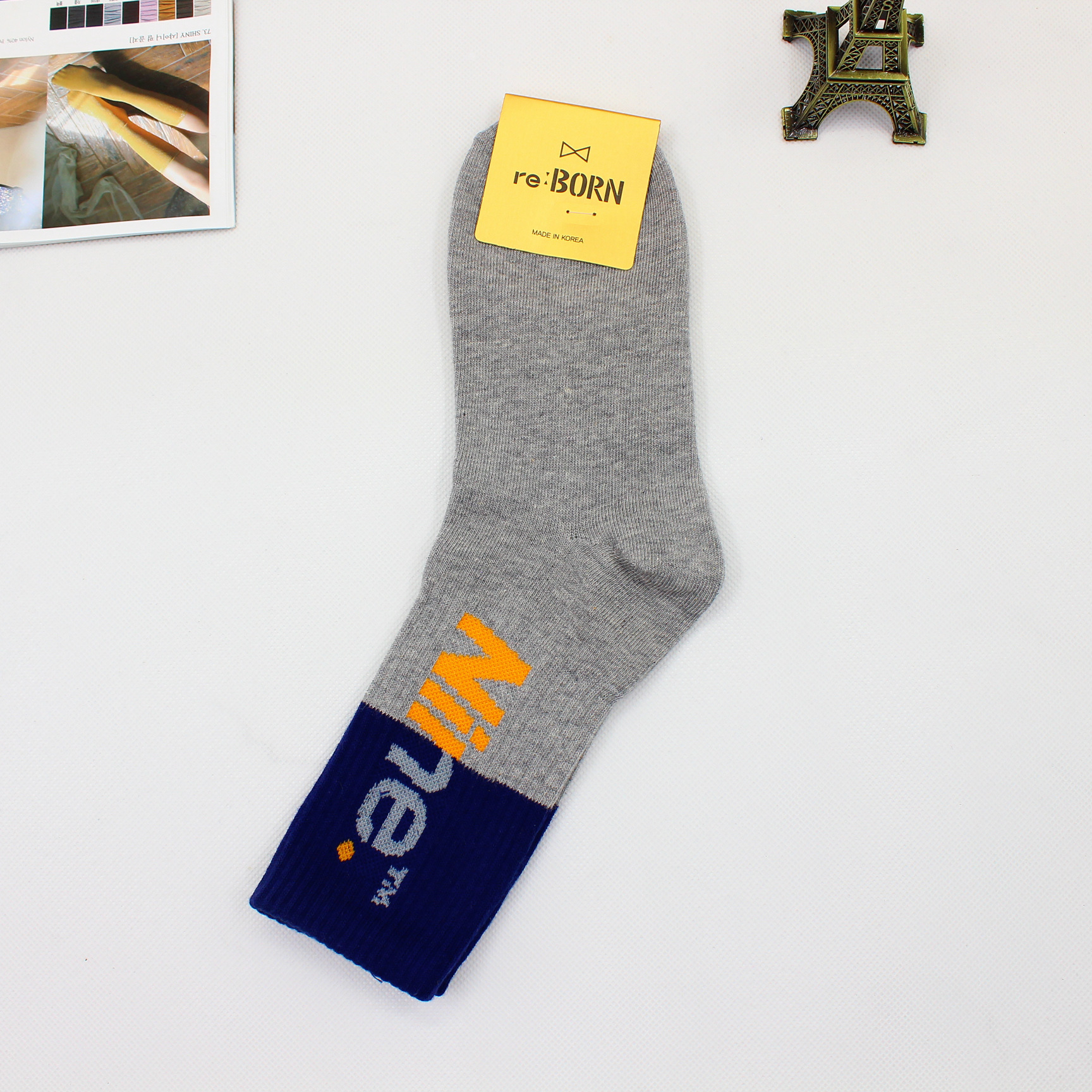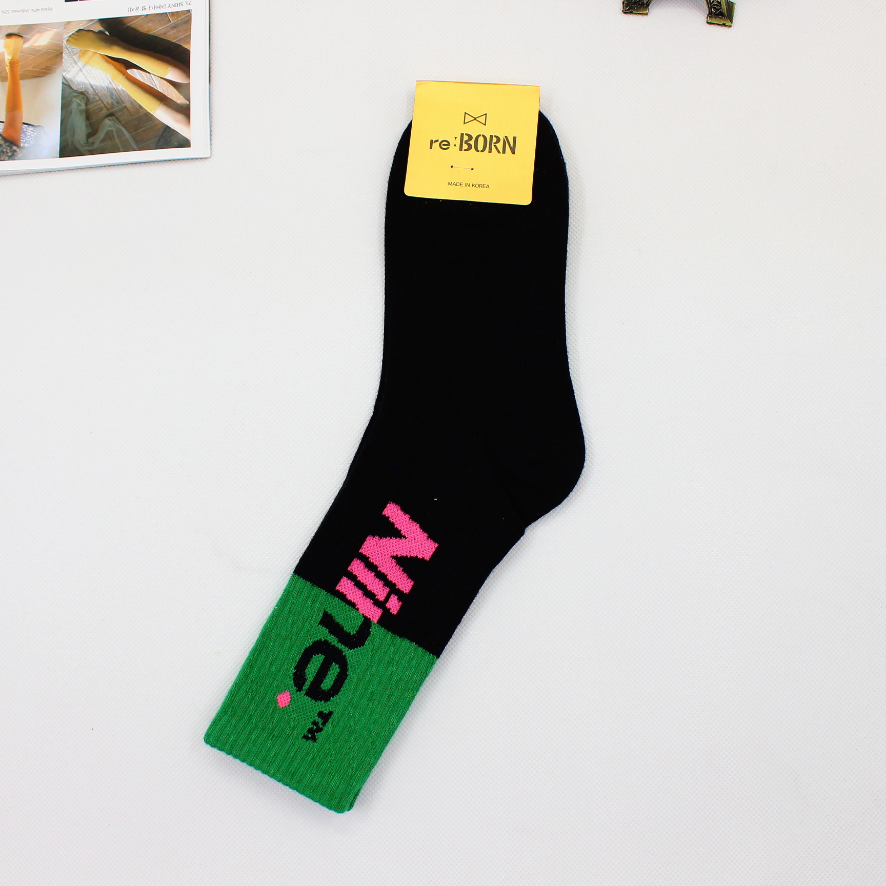 한국 가을과 겨울 새로운 동대문 여성 양말 컬러 매칭 컬러 편지 거리 힙합 스택 스타킹