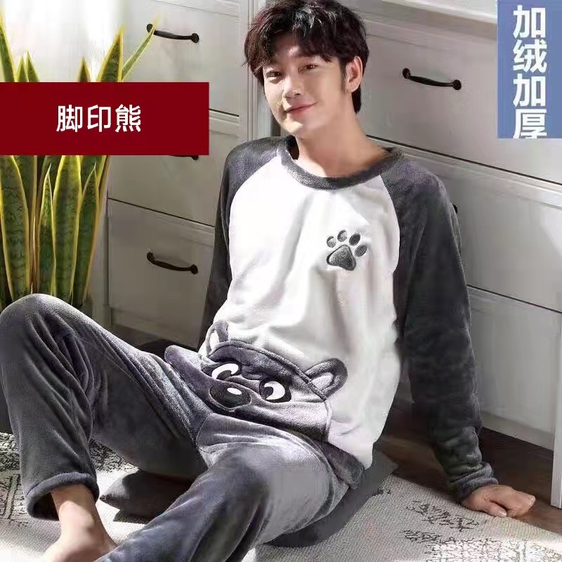 산호 양털 잠옷 남자의 겨울 두꺼운 기모 봄 가을과 겨울 남자의 플란넬 가정 옷 겨울 남자의 세트