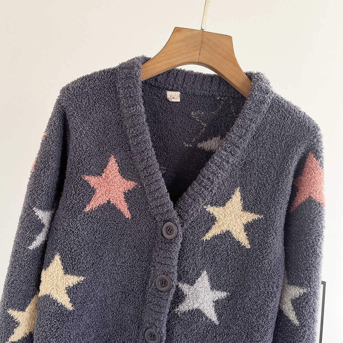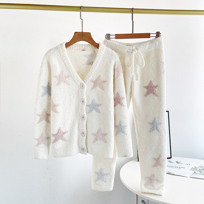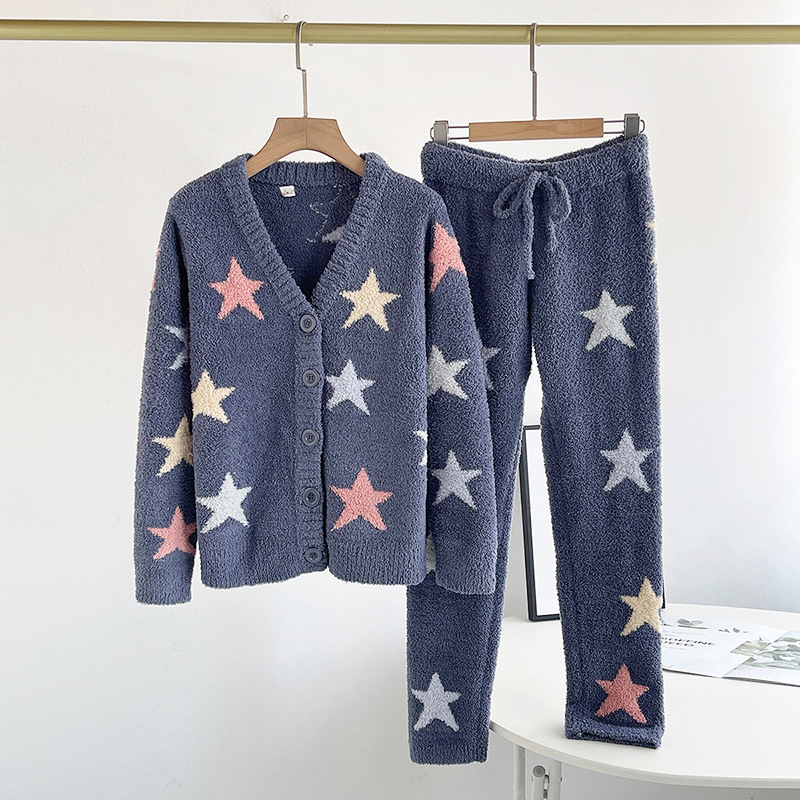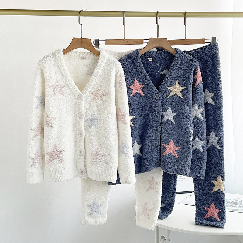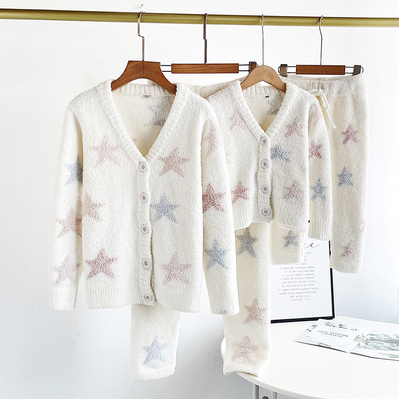 여자 가디건 가을과 겨울 부드러운 반쪽 벨벳 5 개 별 따뜻한 봉제 부모-자식 커플 잠옷 가정복 세트