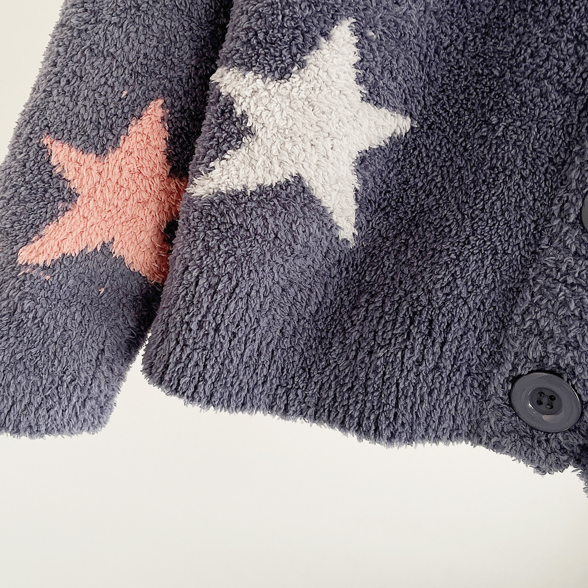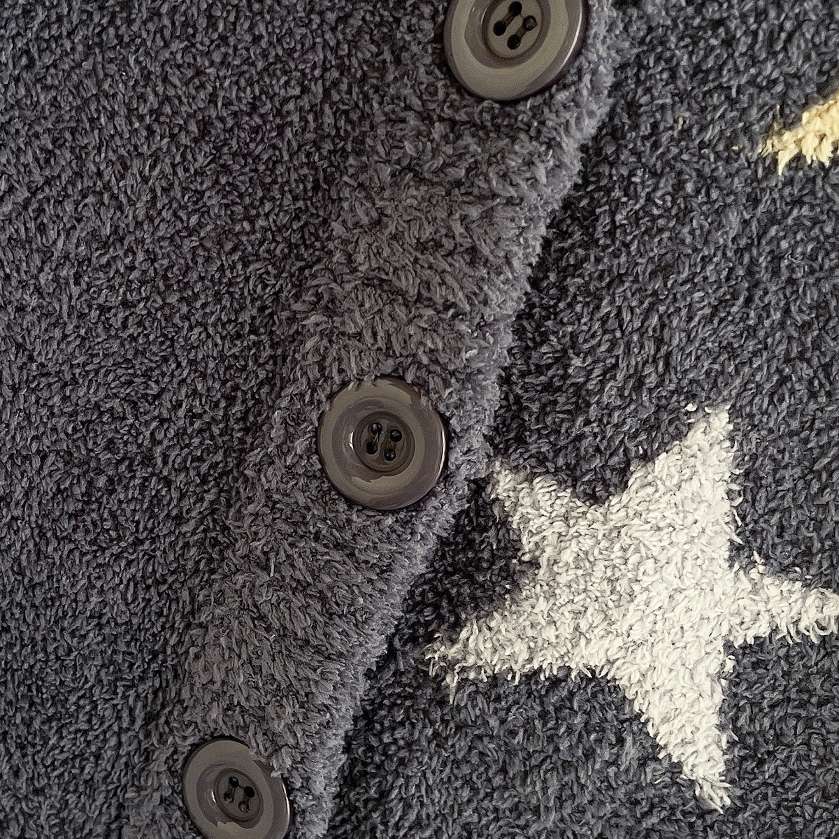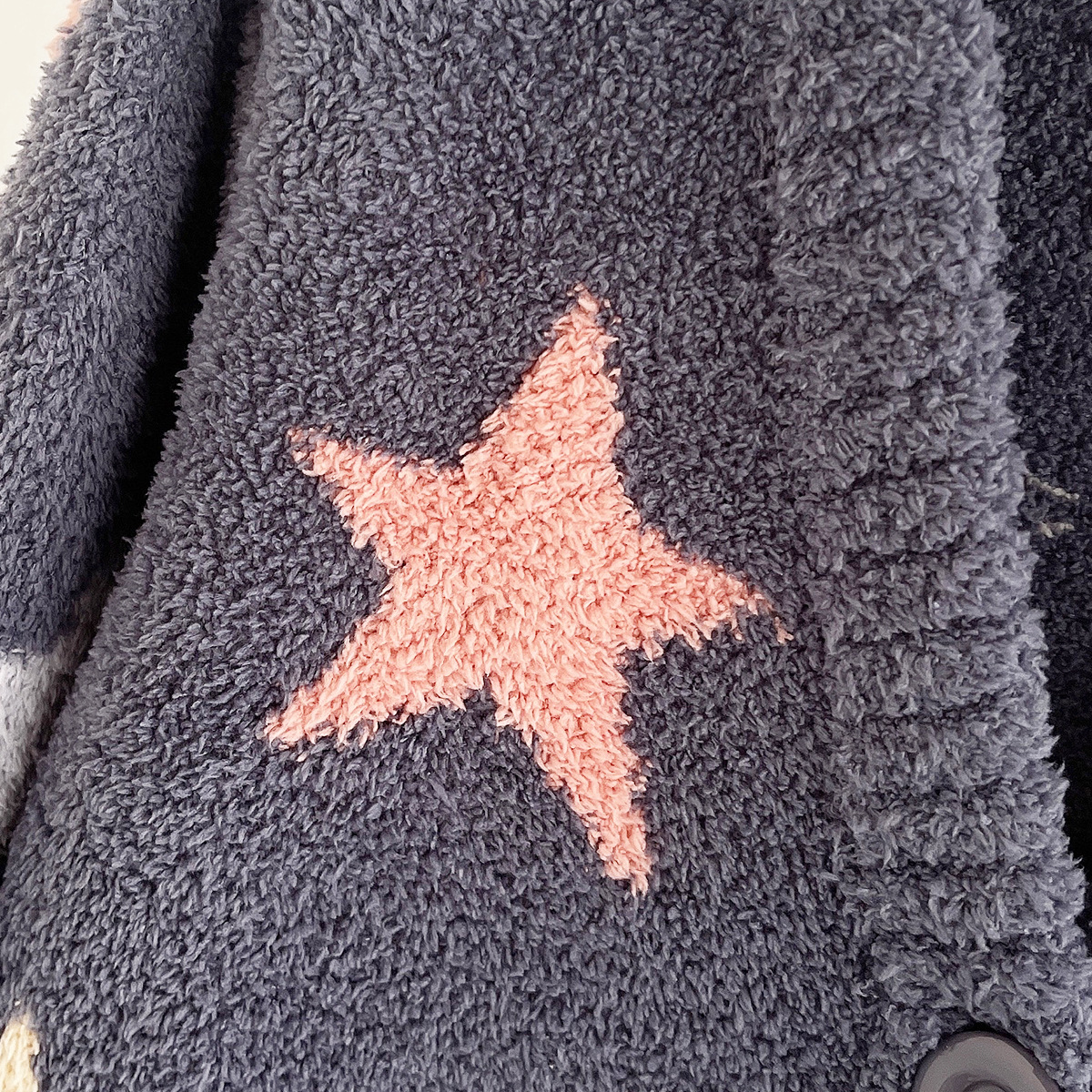 여자 가디건 가을과 겨울 부드러운 반쪽 벨벳 5 개 별 따뜻한 봉제 부모-자식 커플 잠옷 가정복 세트