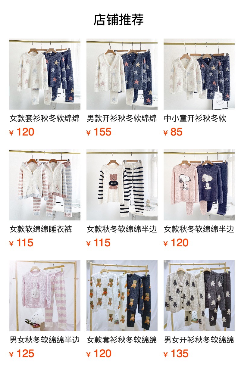 여자 가디건 가을과 겨울 부드러운 반쪽 벨벳 5 개 별 따뜻한 봉제 부모-자식 커플 잠옷 가정복 세트스토어 가기