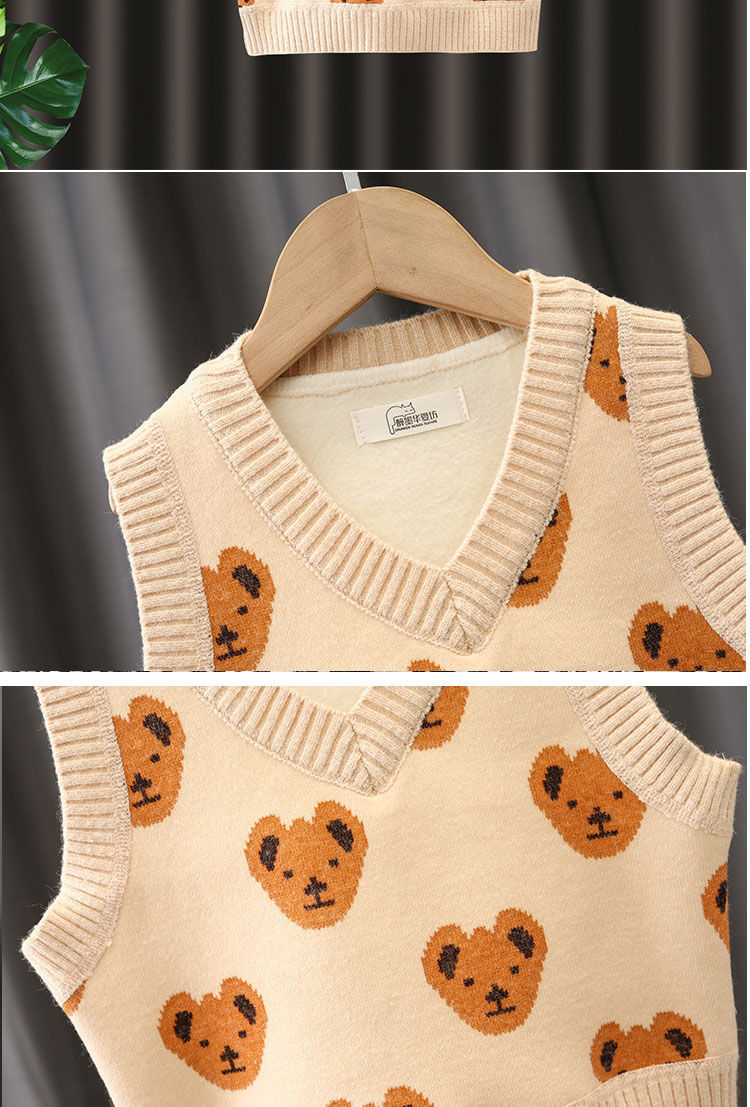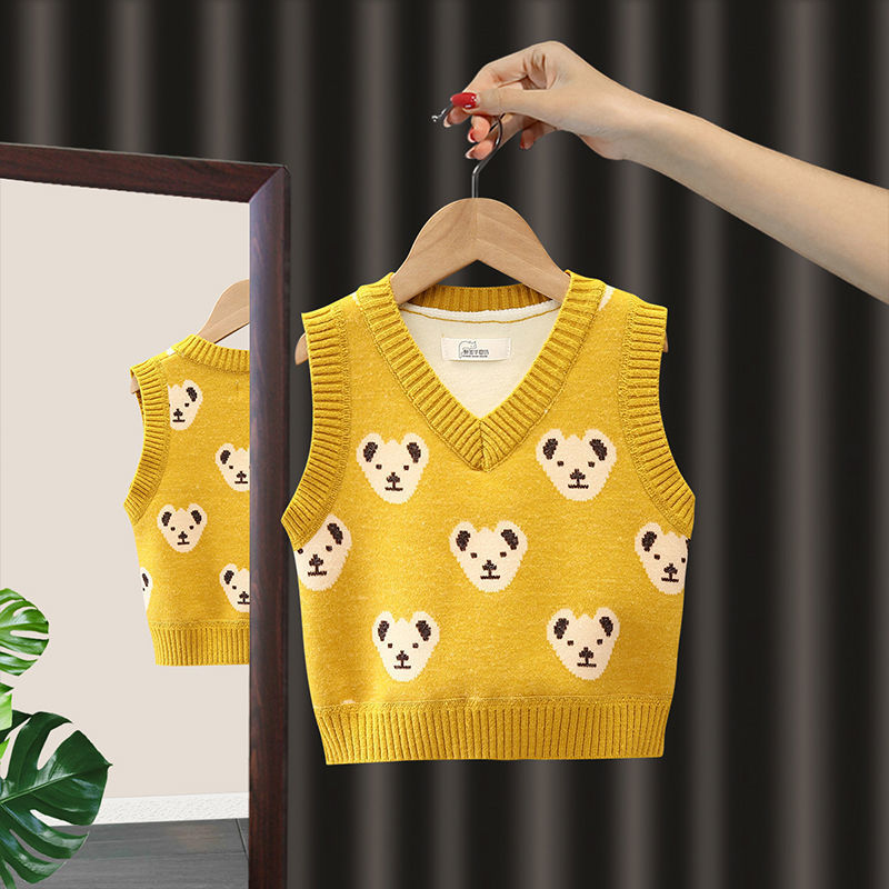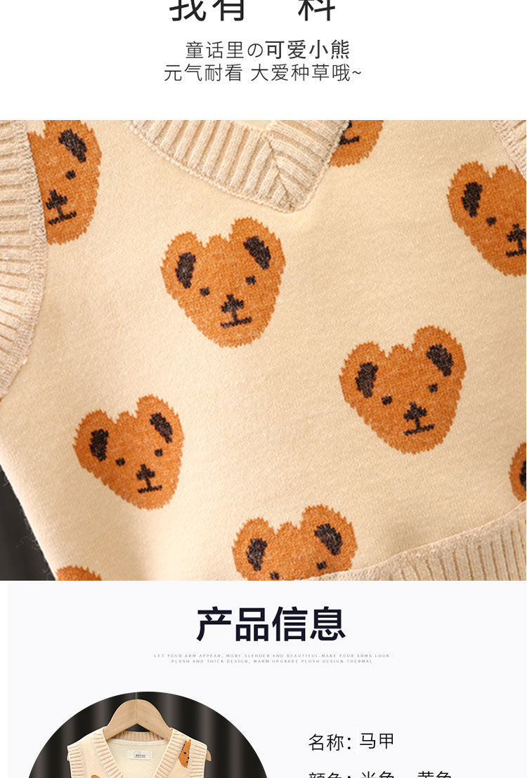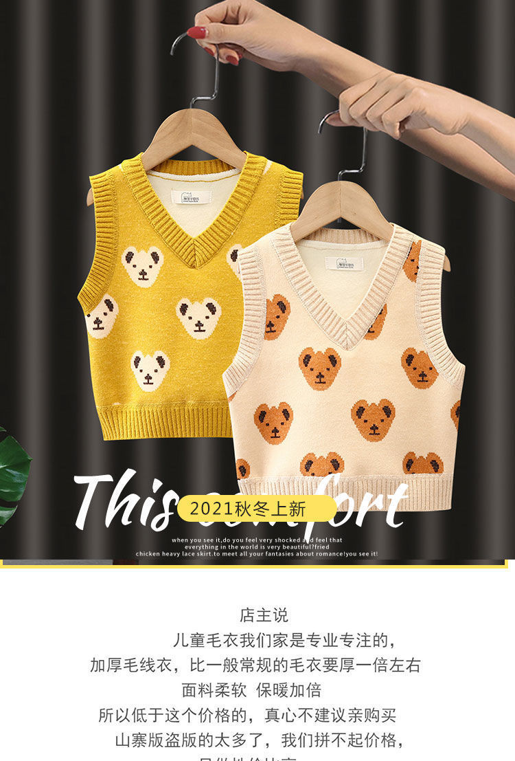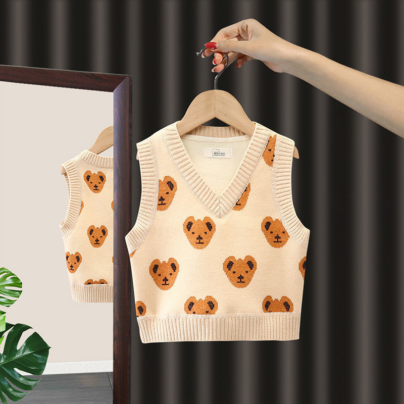 남아 및 여아용 가을 아우터웨어, 곰 V넥 아기 니트 조끼, 1세 아동용 모직 스웨터 조끼스토어 가기