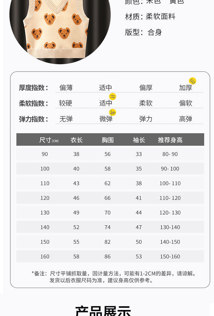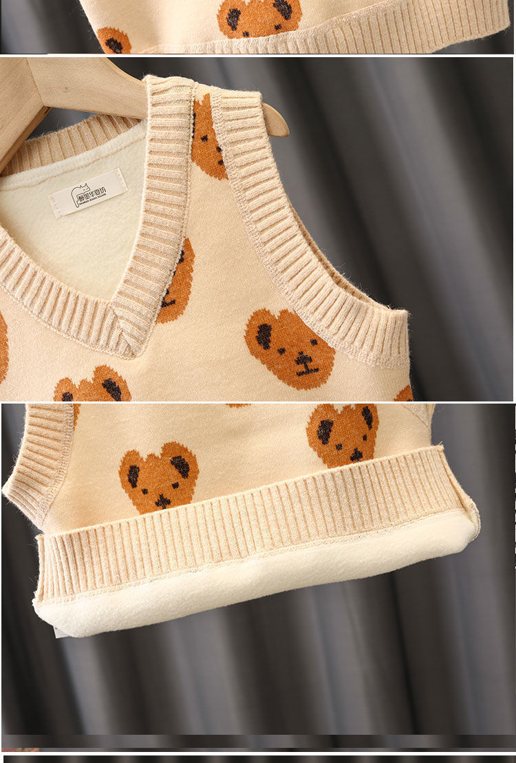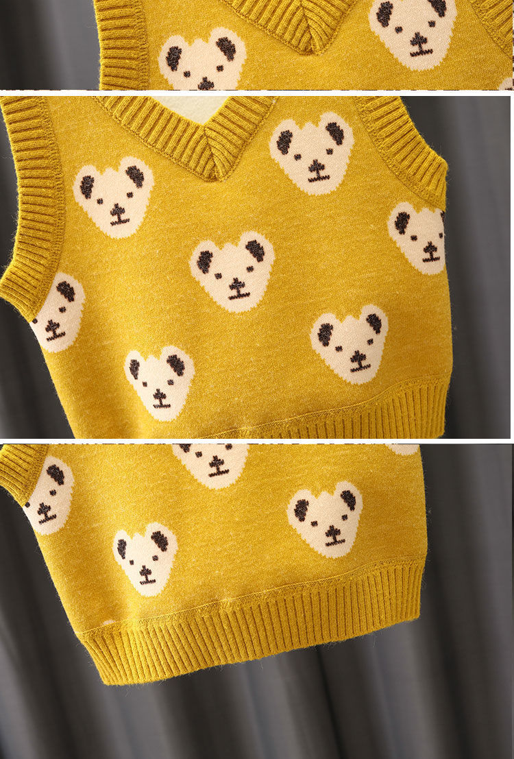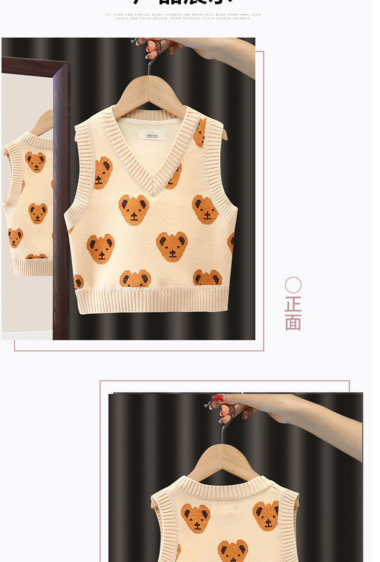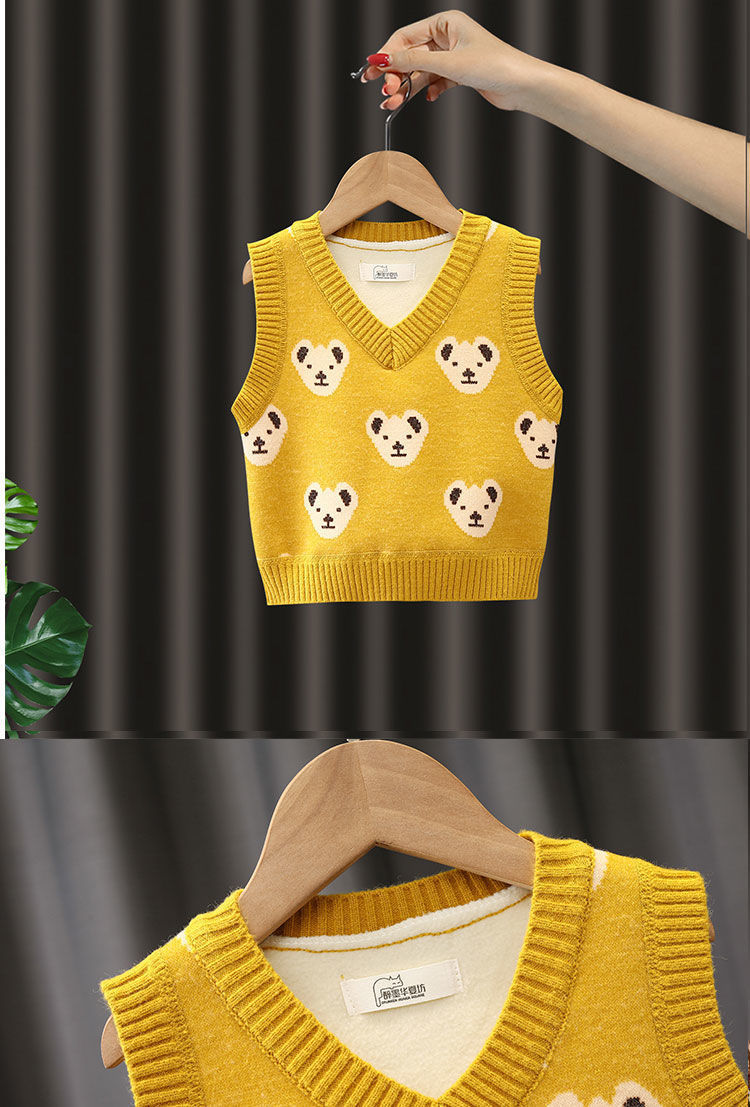 남아 및 여아용 가을 아우터웨어, 곰 V넥 아기 니트 조끼, 1세 아동용 모직 스웨터 조끼스토어 가기