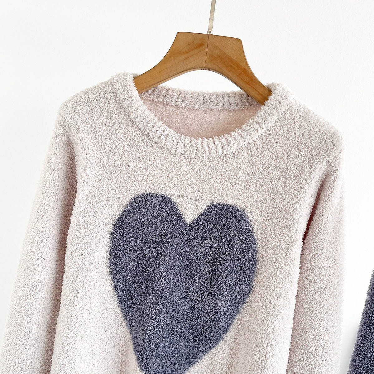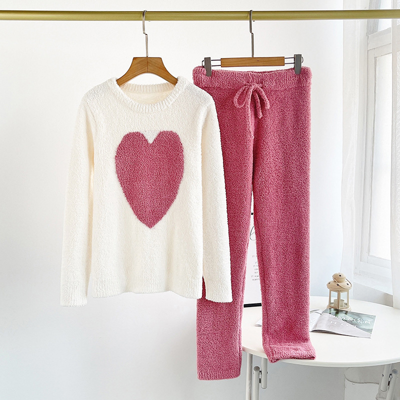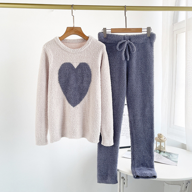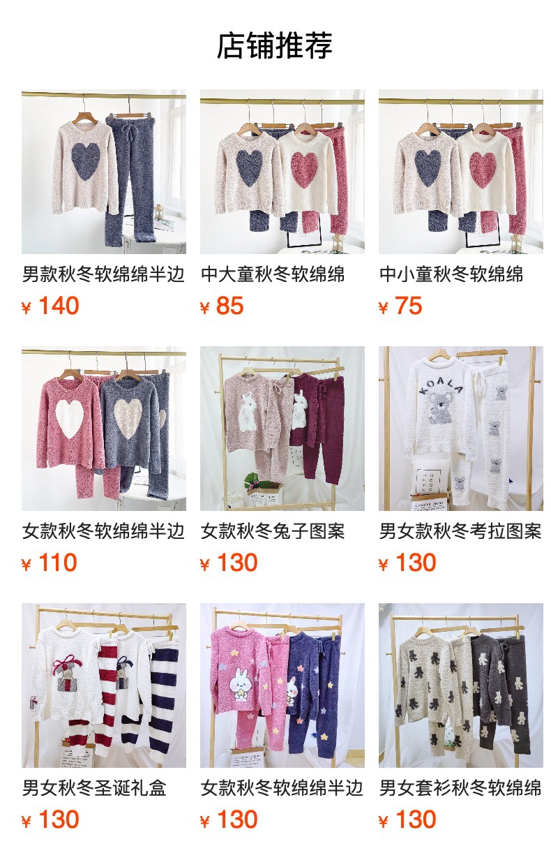 여자의 가을과 겨울 부드러운 반쪽 벨벳 대비 색상 사랑 봉제 따뜻한 부모-자식 커플 잠옷 가정 옷 세트스토어 가기