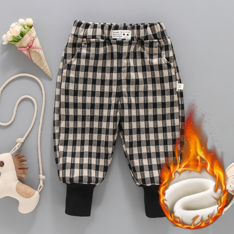 어린이 바지 가을과 겨울 기모 바지 남아 발목 묶인 바지 어린이 격자 무늬 여성용 기모 두꺼운 겨울 바지