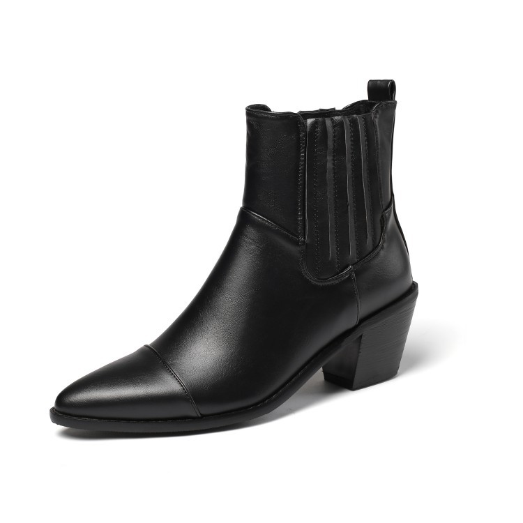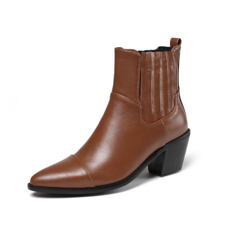 Wish 크로스 국경 대외 무역 플러스 사이즈 여성 신발 유럽, 미국과 영국 뾰족한 첼시 부츠 청키 힐 미드힐 짧은 배럴 여성 부츠 재고스토어 가기