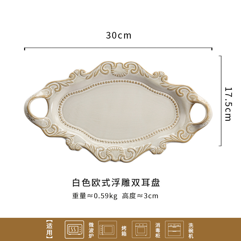 유럽 스타일 빈티지 양각 더블 이어 플레이트 창조적 인 접시 서양 음식 접시 생선 접시 가정용 과일 접시 분배 접시 세라믹 식기스토어 가기