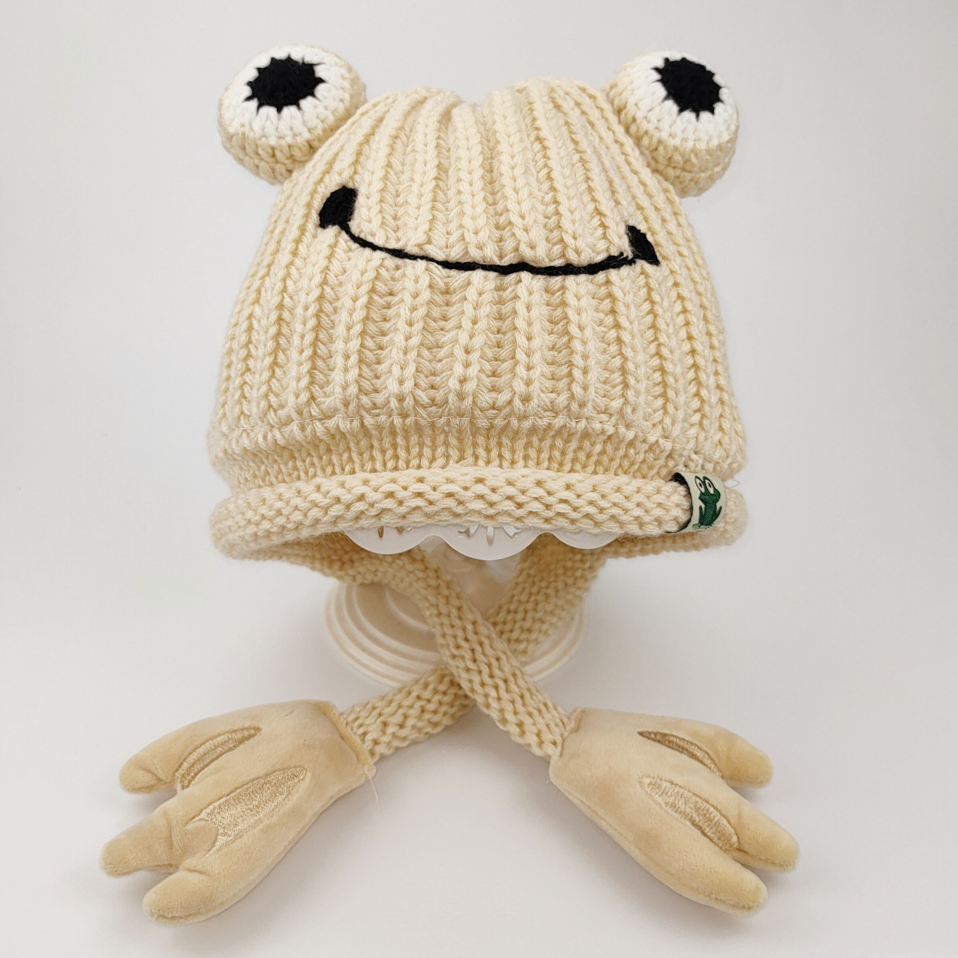 아기의 귀여운 니트 울 모자 어린이 가을과 겨울 따뜻한 멜론 모자 큰 눈 개구리 남성과 여성의 풀오버 모자