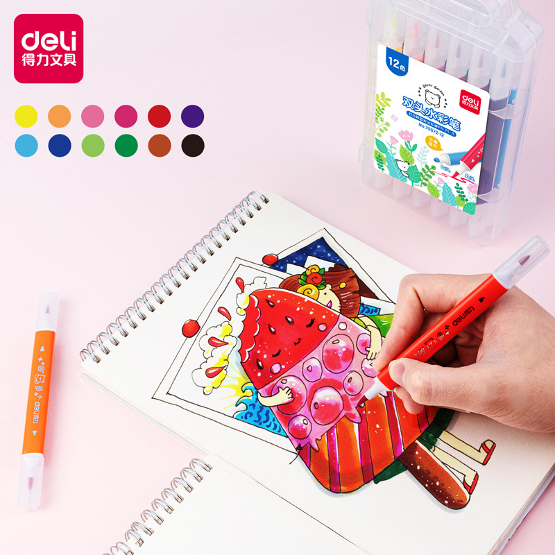 델리 70672-12-24-36-48 컬러 세트 수채화 펜 어린이 초급 양두 학생 컬러 페인팅 펜
